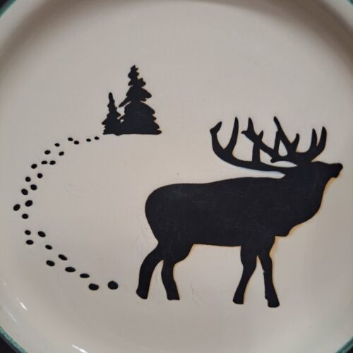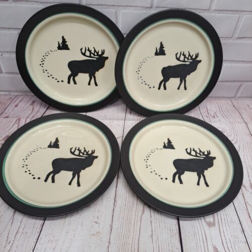 Bass Pro Shop White River Salad Dessert Plate Moose Brown White 8" Set Of 4