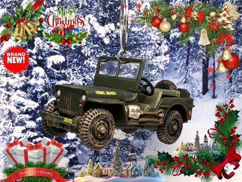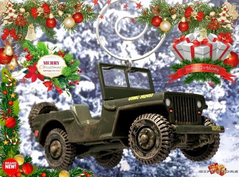 RARE CHRISTMAS ORNAMENT USMC WILLYS™ ARMY JEEP MB GPW GREAT GIFT NOVELTY