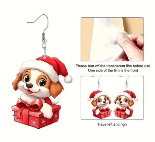 Celebrate the festive spirit with these charming Santa Puppy Dog Earrings, a delightful addition to your holiday wardrobe. These multicolored earrings feature an adorable dog shape, wrapped in a present, embodying the joy and merriment of Christmas. The dangle/drop style coupled with a comfortable hook closure ensures a secure fit for all-day wear, making them a perfect choice for holiday gatherings or as a thoughtful gift.