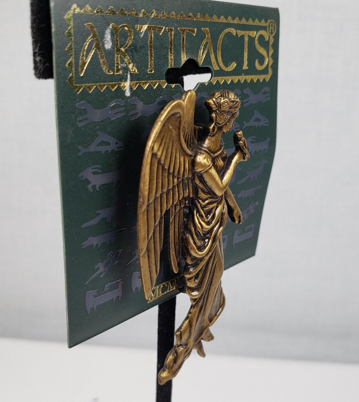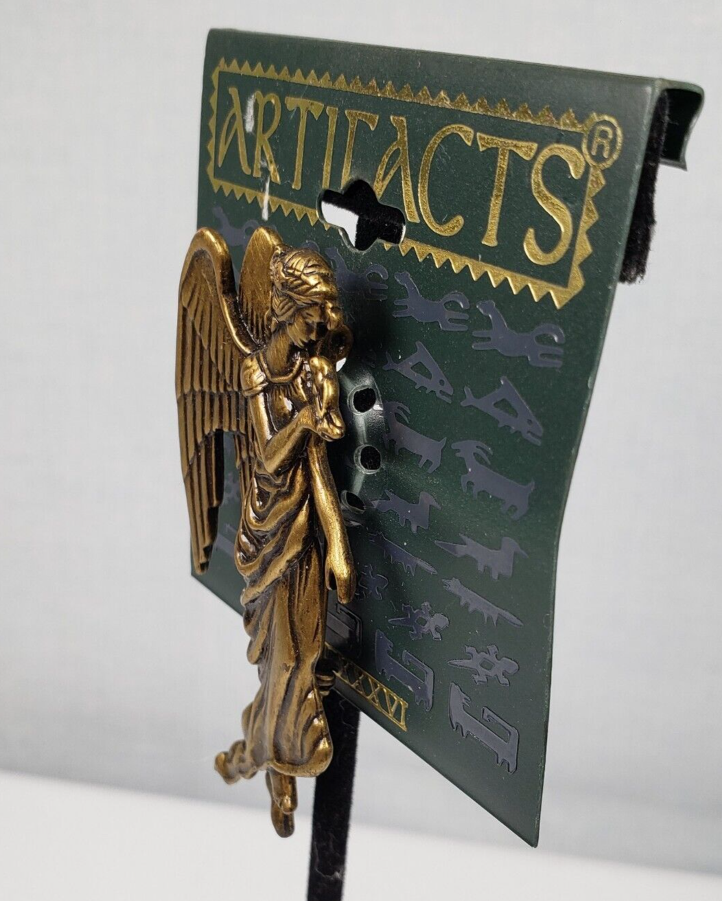 Vintage 1986 JJ Jonette Brass Tone Angel Holding A Bird Artifacts Brooch