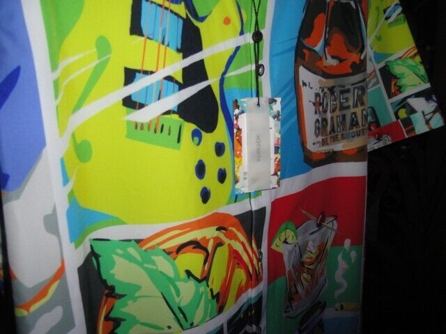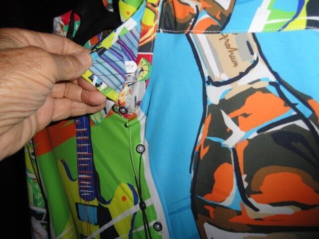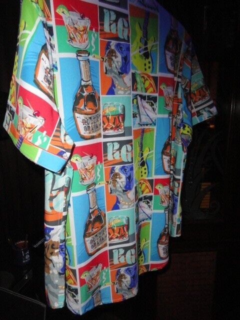 Introducing the Robert Graham FIESTA DE VERANO Classic Fit Short Sleeve Shirt in size XL. This button-up shirt features a collared neckline with a point collar style and a closure that button closes. The shirt is made of a woven polyester blend fabric that is machine washable, making it perfect for casual occasions during the summer. The shirt has a pop art pattern in multicolor, which adds a touch of fun and vibrancy to any outfit.