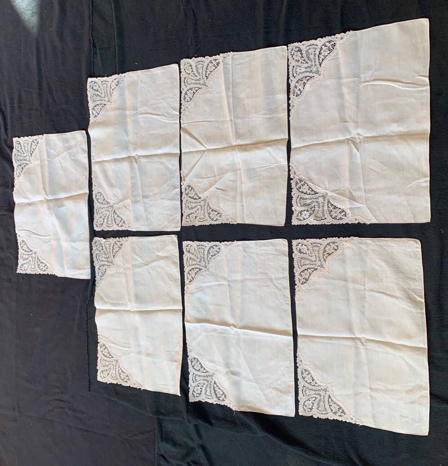 Vintage Linen & Lace Ivory Placemats Set of 7