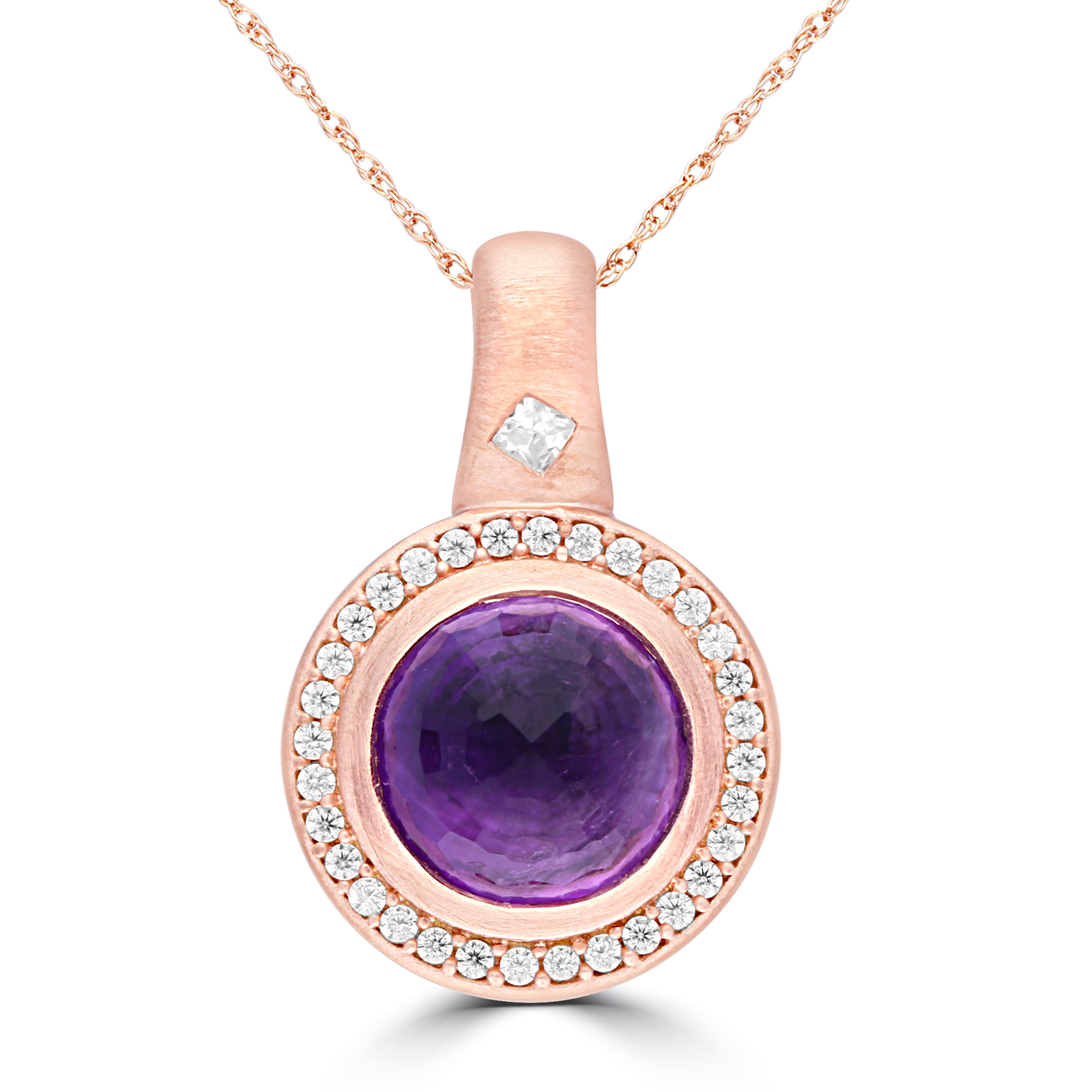 Finest Material :- Spread a little sunshine with this bright pendant necklace. Round shape Amethyst and Cubic Zircon Drop Pendant for women is charmingly crafted in 925 Sterling Silver Rose Gold Plated. The rich shades of amethyst gemstone measures about 10 x 10 mm and hanging length is 0.36 inches. The pendant suspends from a cable chain with a 2 inches extender comes with Lobster clasp closure. With their lush design, this necklace add a feminine accent to any style.