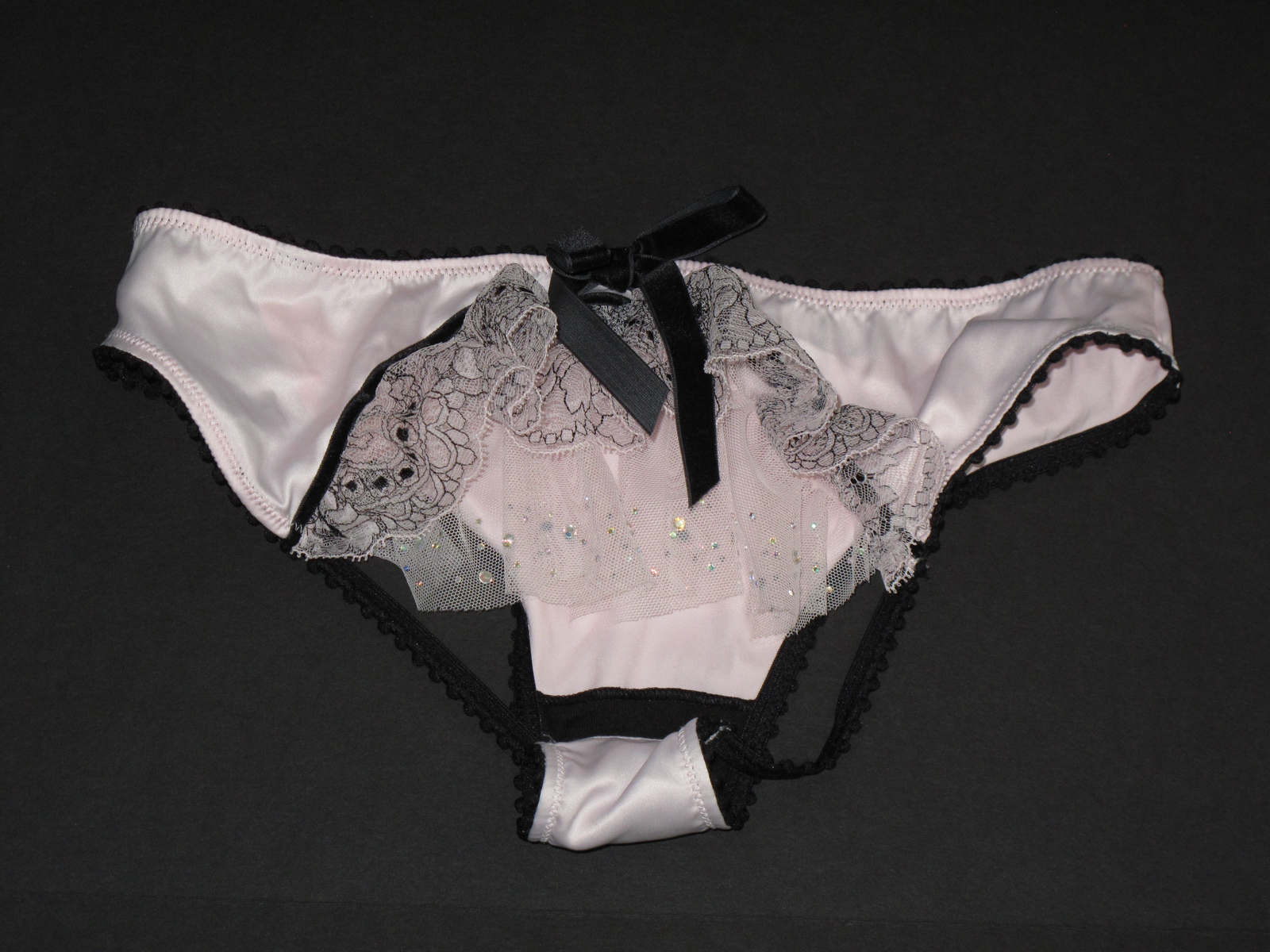 Rare ! From Old Stock Beautiful NWT Victoria's Secret Pink Satin Black Trims Cut Out Open Back Crystal Veil Panty in size S Please feel free to send me a message with any questions before purchase to avoid complications.No returns accepted. Due to the intimate nature of the majority of our items.