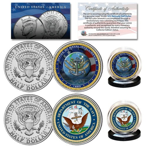 AIR FORCE USAF INTELLIGENCE Branch JFK Half Dollar Armed Forces Military 2-Coin U.S. Set. The set comes with a Certificate of Authenticity to guaranty that your coins are authentic and recognized by every monetary authority around the world, assuring its Collector Edition status. Each coin comes in a premium coin capsule.