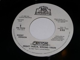 This is an original, vintage promotional 45 rpm phonograph record by Canyon entitled, "Right Track Wrong Train". This is the long/short issue. Record label 16th Avenue PB-70426.
