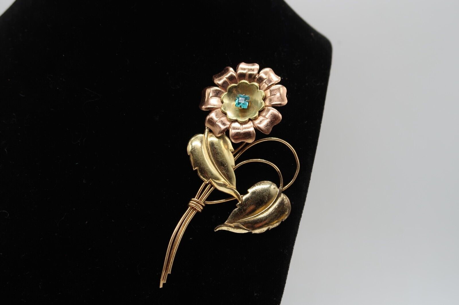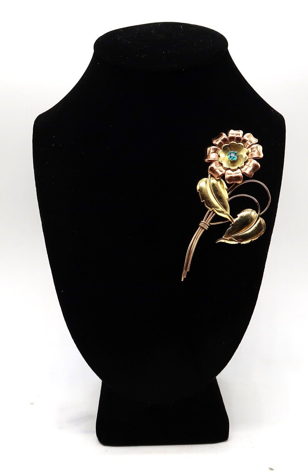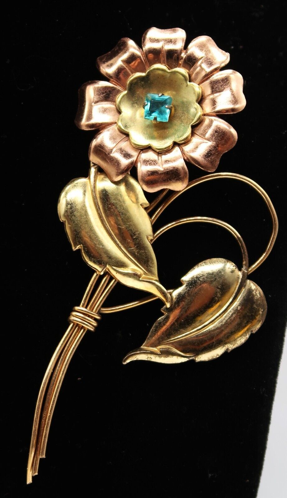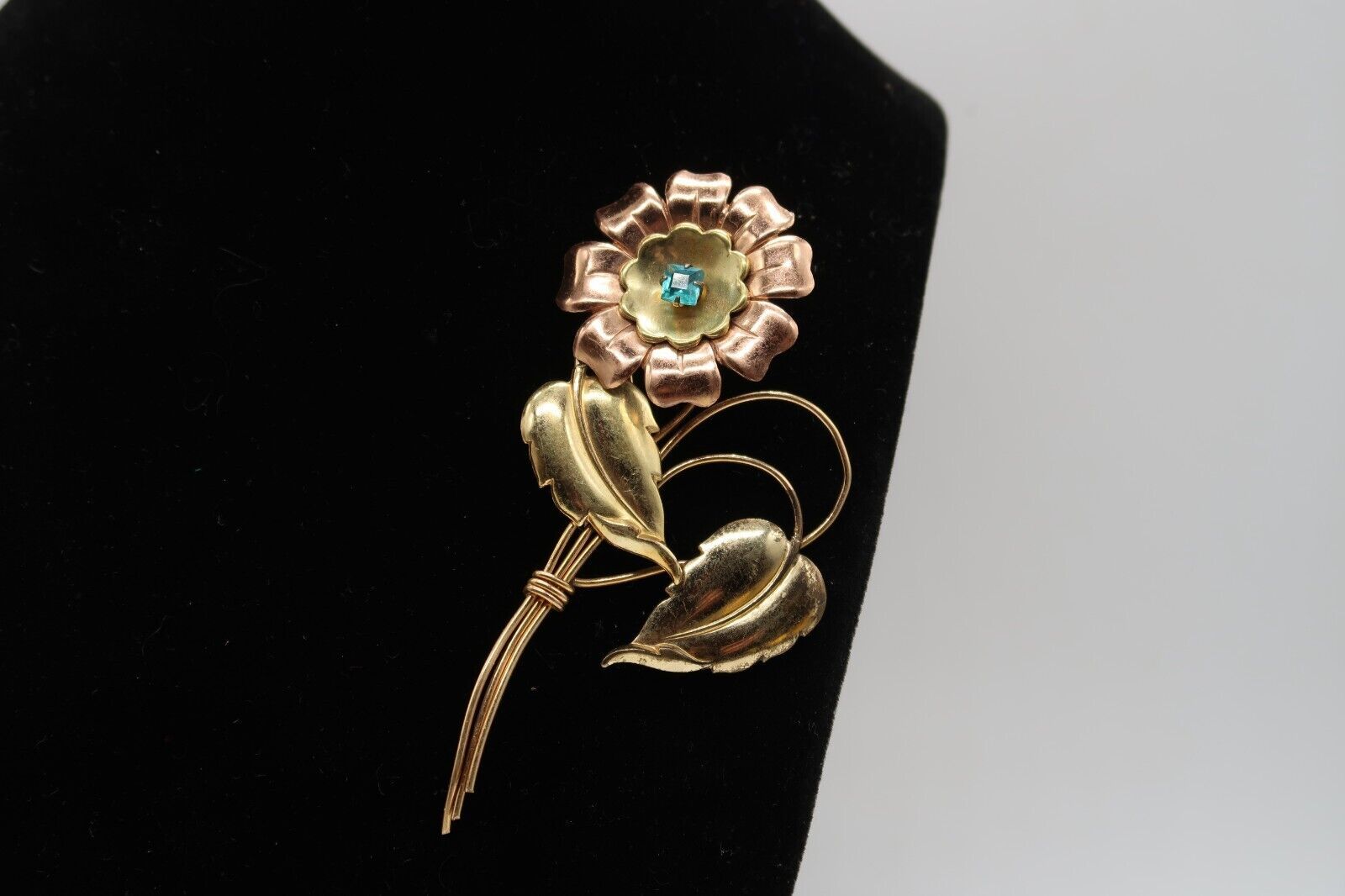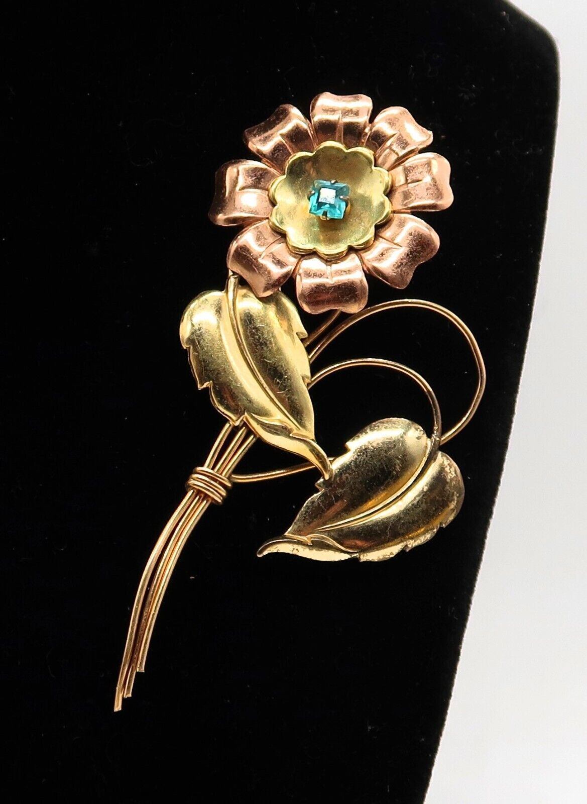 Vtg Harry Iskin 1/20 12K Two Tone Gold Filled Blue Rhinestone Flower Rare Brooch