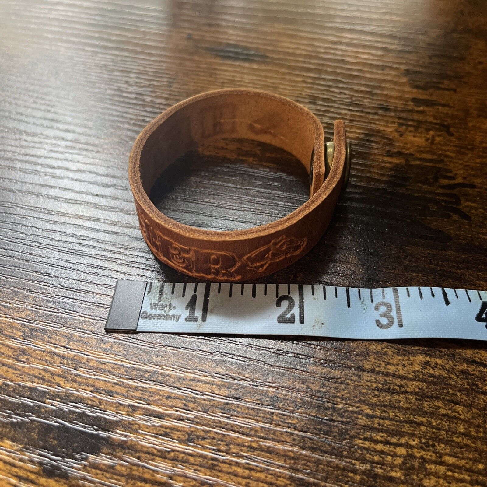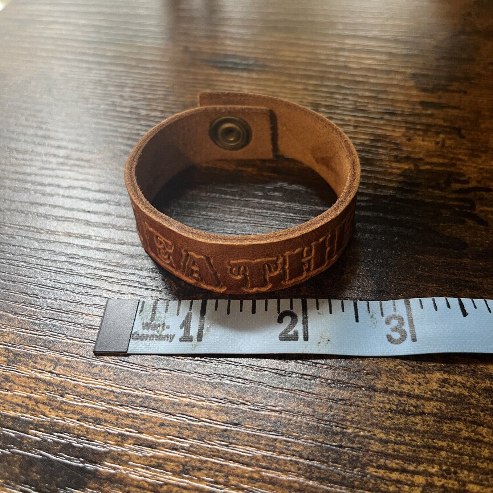 Add a touch of western style to your outfit with this vintage Heather Horse leather bracelet. The bracelet is a unique piece that was handmade in the United States in the 1970s. It features an engraved cuff design with a snap closure, making it easy to wear and secure. The brown leather material gives it a classic and authentic look that is perfect for casual occasions.