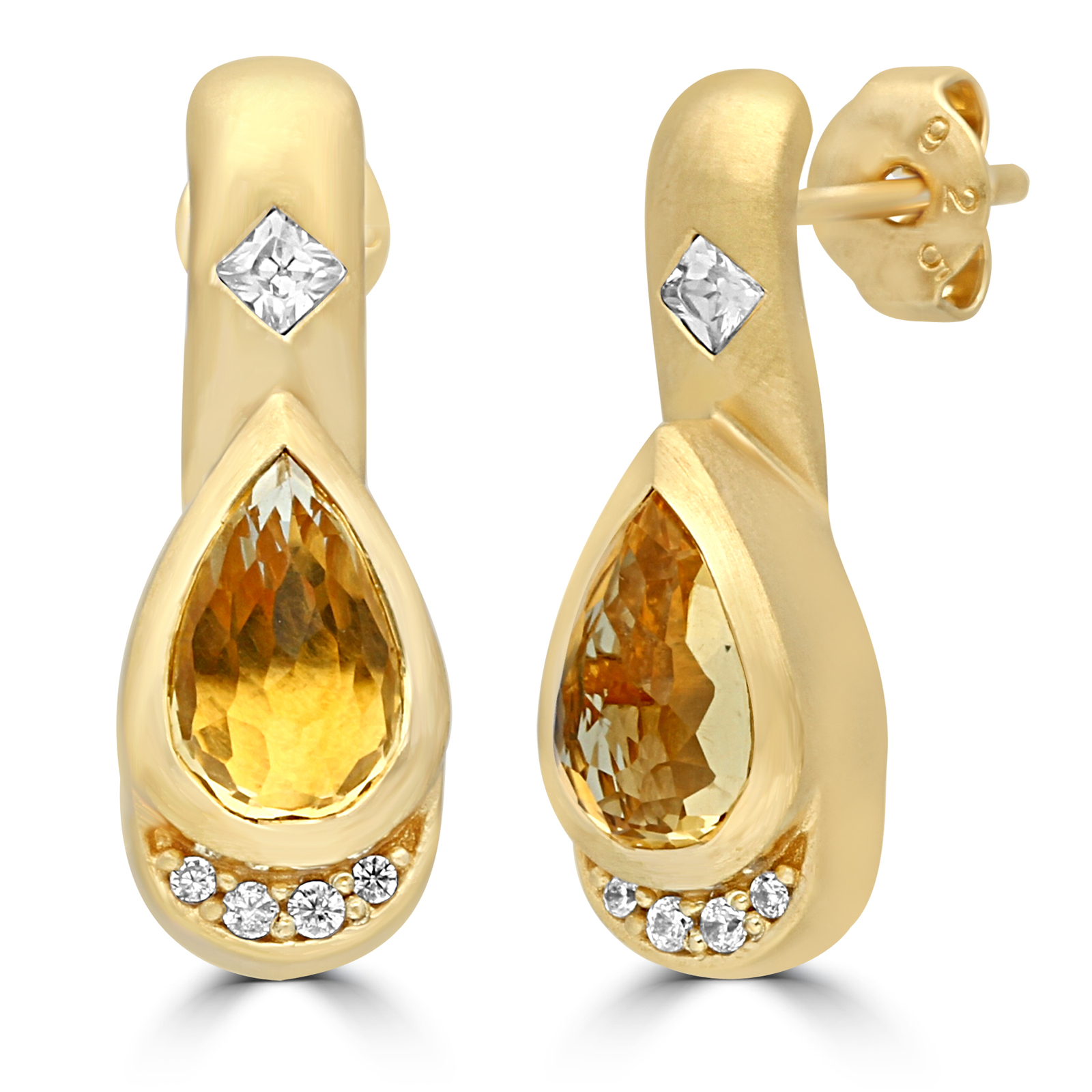 Finest Material :- Selene pear shape Citrine and Cubic Zircon Drop Earrings for women is charmingly crafted in 925 Sterling Silver Yellow Gold Plated. The rich shades of citrene gemstone measures about 8 x 5 mm and hanging length is 0.76 inches. The earrings has push back closure. With their lush design, these earrings add a feminine accent to any style. Pair them with your casual or formal attire.