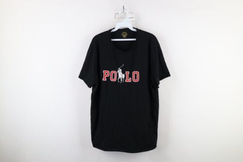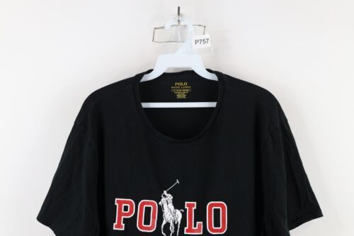 Retro Ralph Lauren Mens XL Custom Slim Fit Spell Out Big Pony Logo T-Shirt Black
