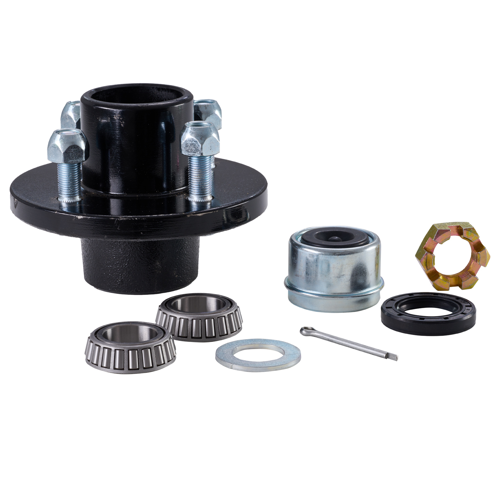 Electrophoretic coated (e-coat) hub includes:Dust Cap1.25" SealCotter Pin for 1-1/16" Spindle1-1/16" tapered roller bearing coneAlways pack new wheel bearings with suitable axle grease prior to installation.