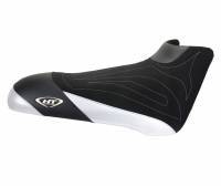 Yamaha WaveBlaster 2 HT Premier seat cover in our Standard Colorway B (Black Suede, Black Carbon Fiber, White Carbon Fiber, White Stitch). If you want to choose the color and material for each panel on the seat, go back and choose our Custom option for this seat.
