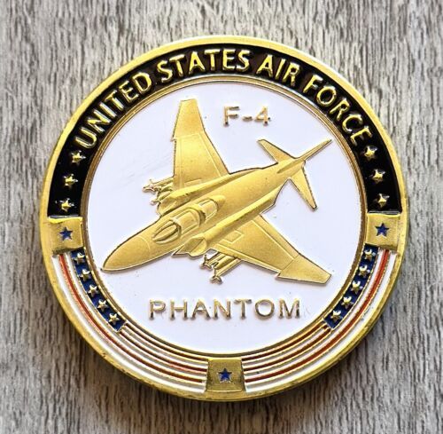 This is a great looking US AIR FORCE F-4 Phantom commemorative challenge coin. Coin has reeded edges and is about 1 9/16" in diameter. All details are raised lettering. Coin is contained in an acrylic air tight holder.
