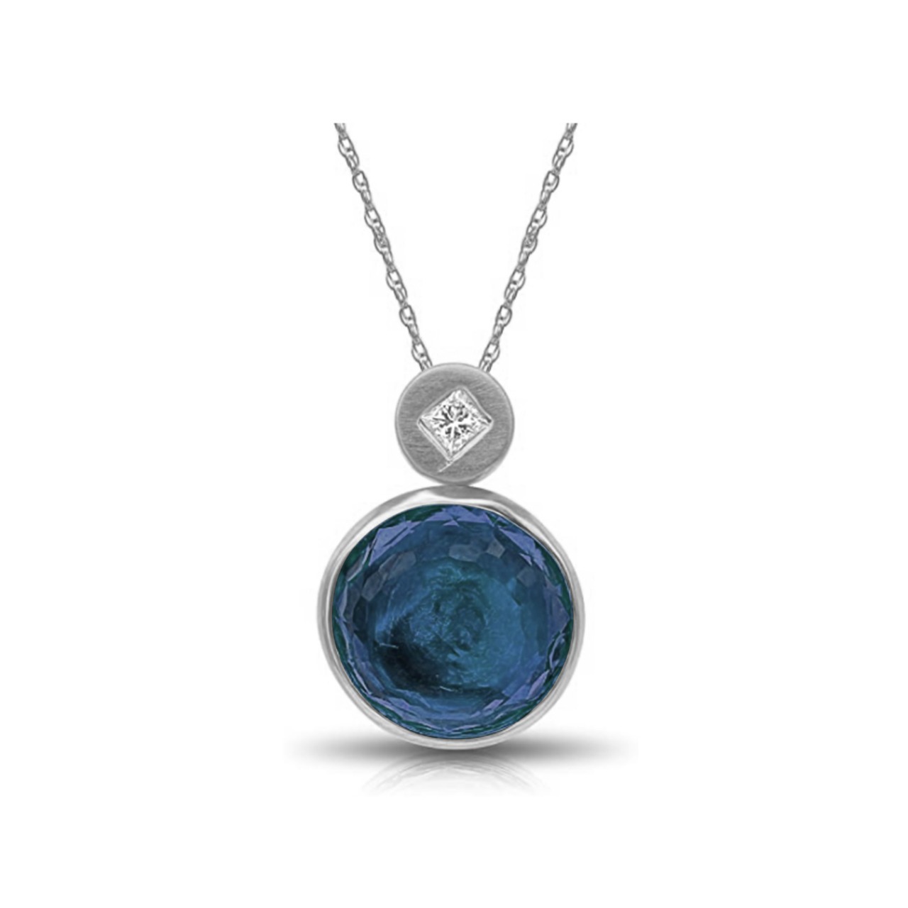 925 SterlingSilver White Gold Plated CubicZircon & Blue TopazPendant Necklace