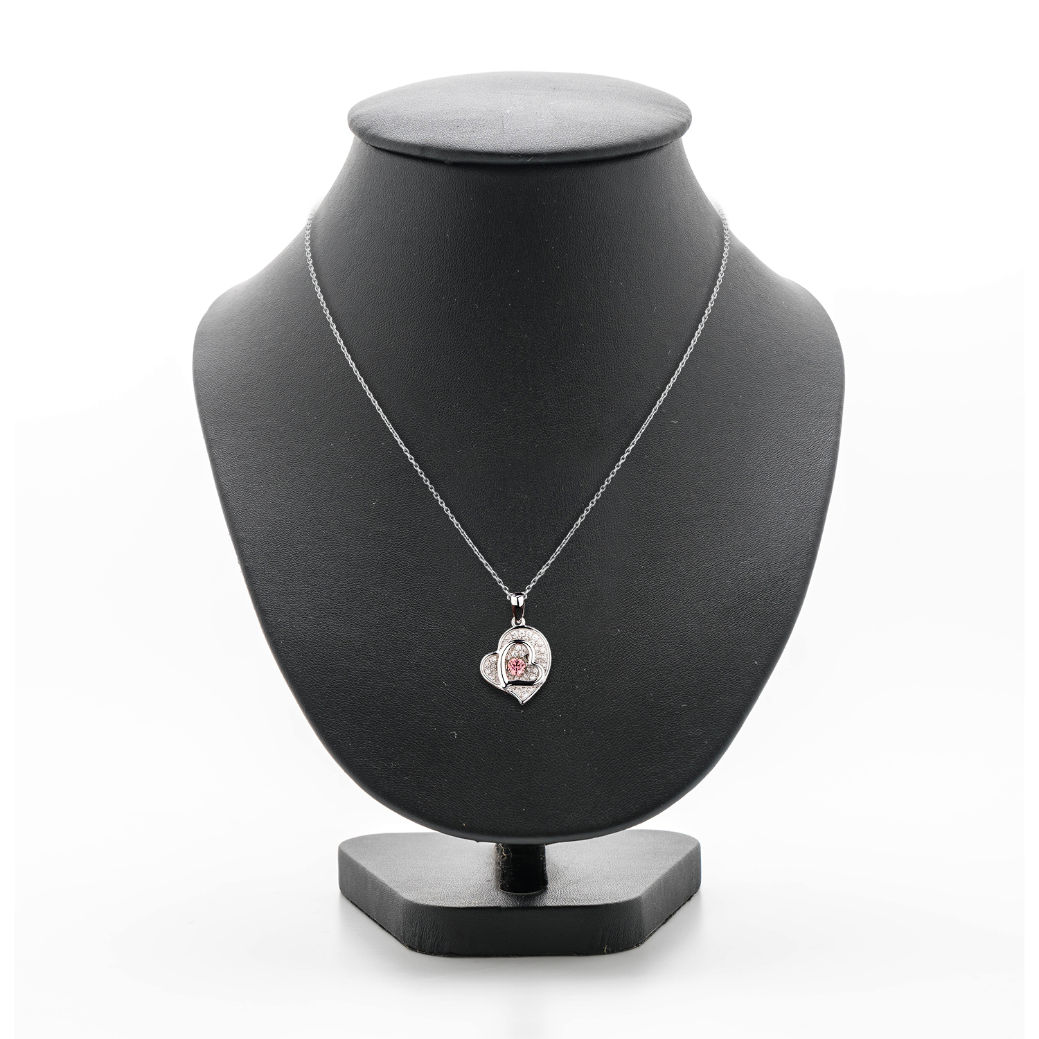 925 Sterling Silver Platinum Plated 0.43 CT Fancy Pink Topaz Double Heart Pendan