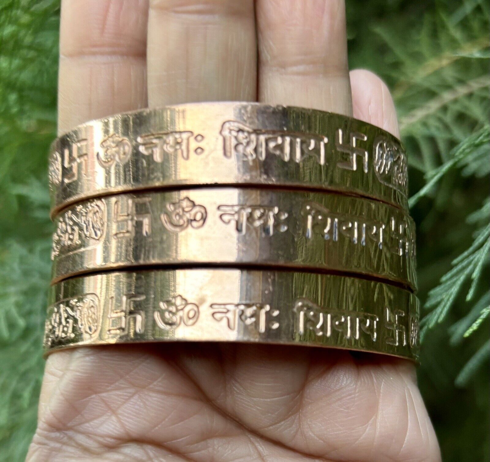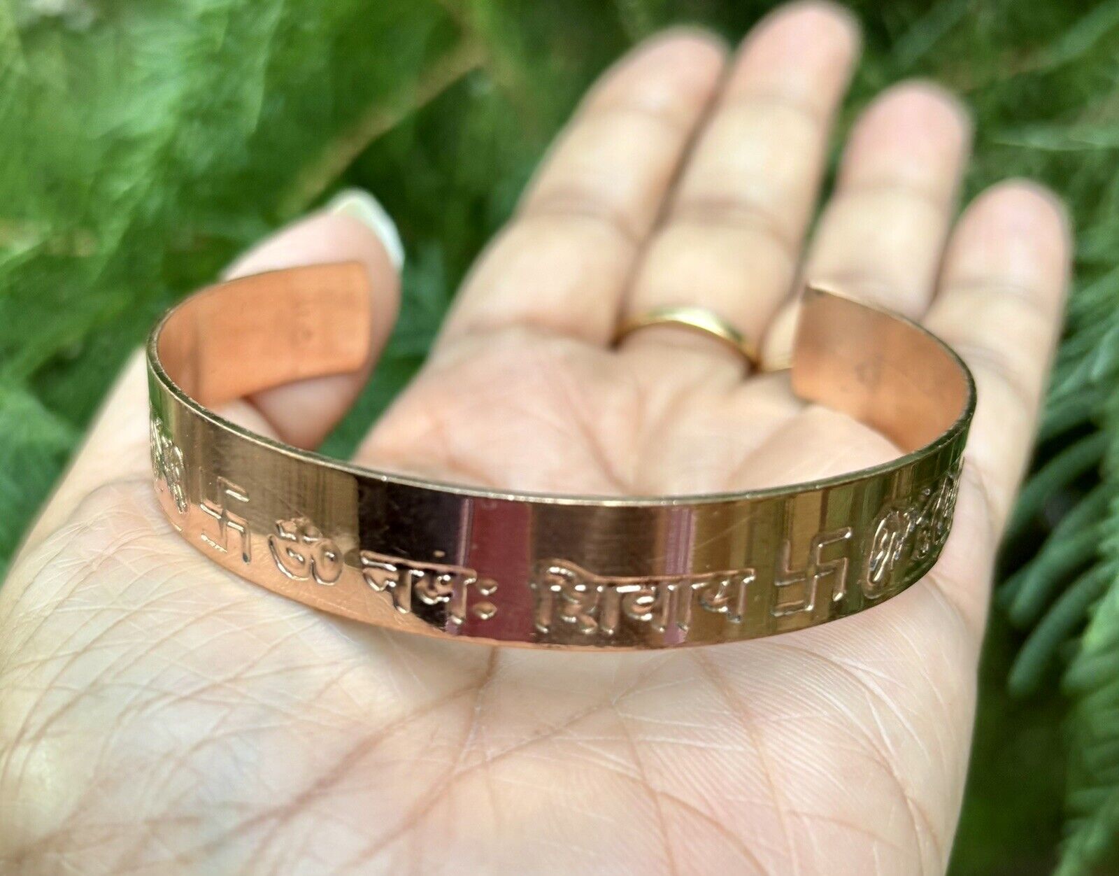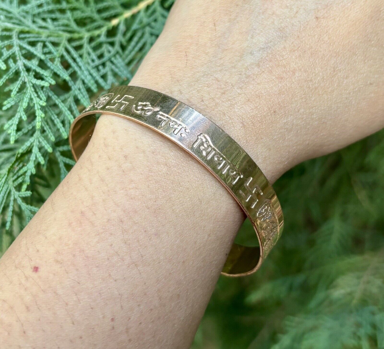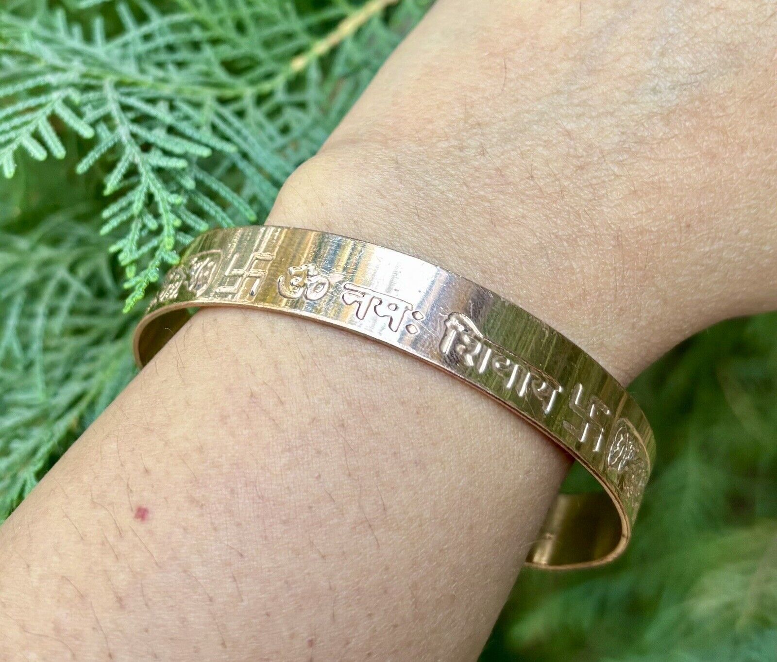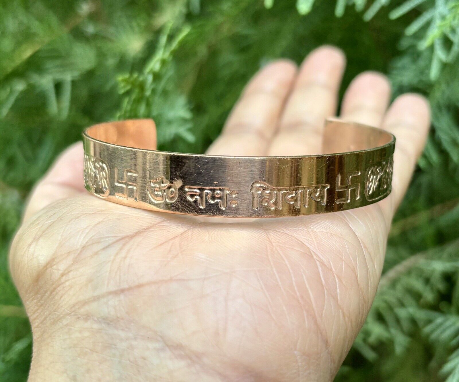 1 piece bracelet manchette de guerison en cuivre pur bijoux, bracelet spirituel, objectifs astrologiques Kriya, cuivre massif Om Namah Shivay 17 grammes