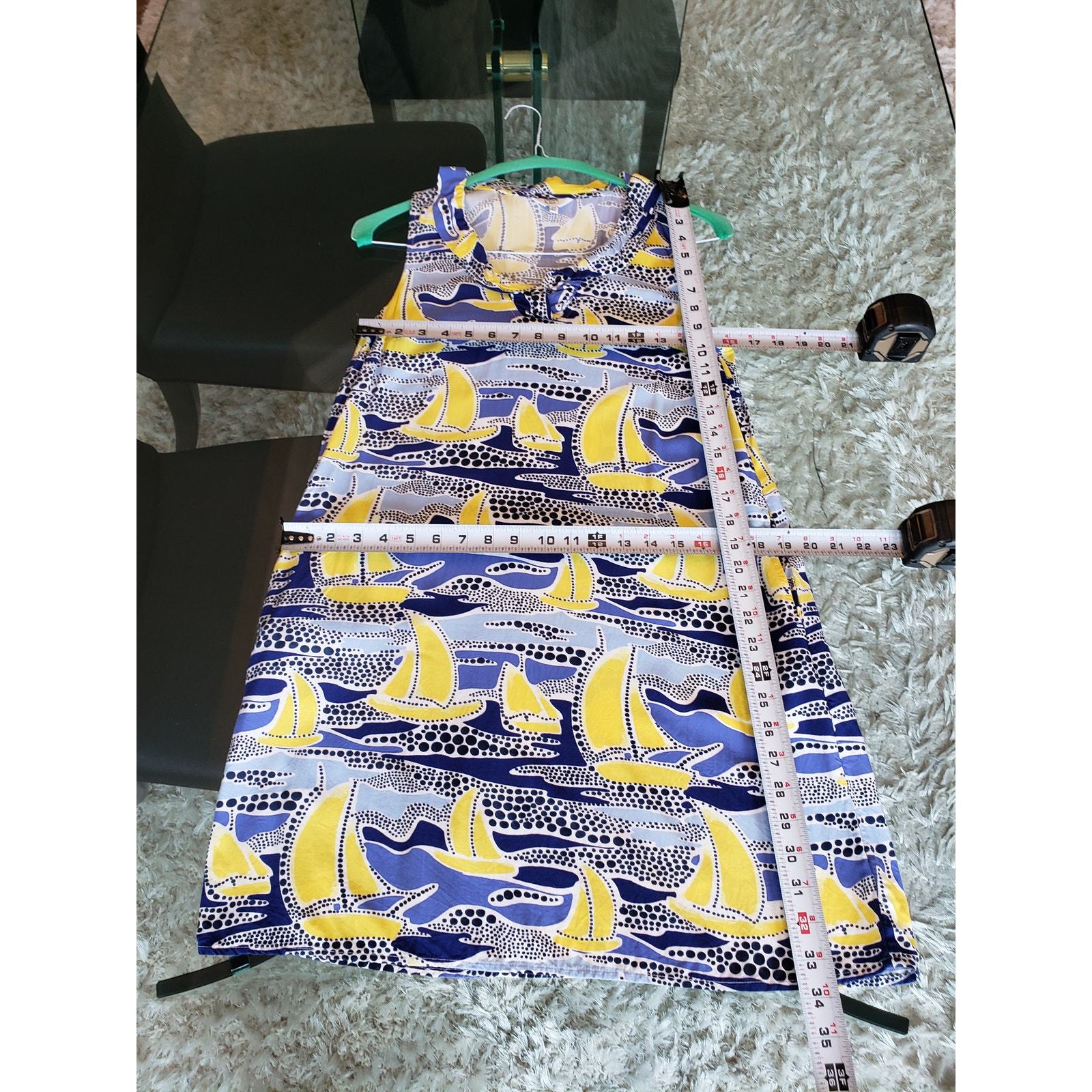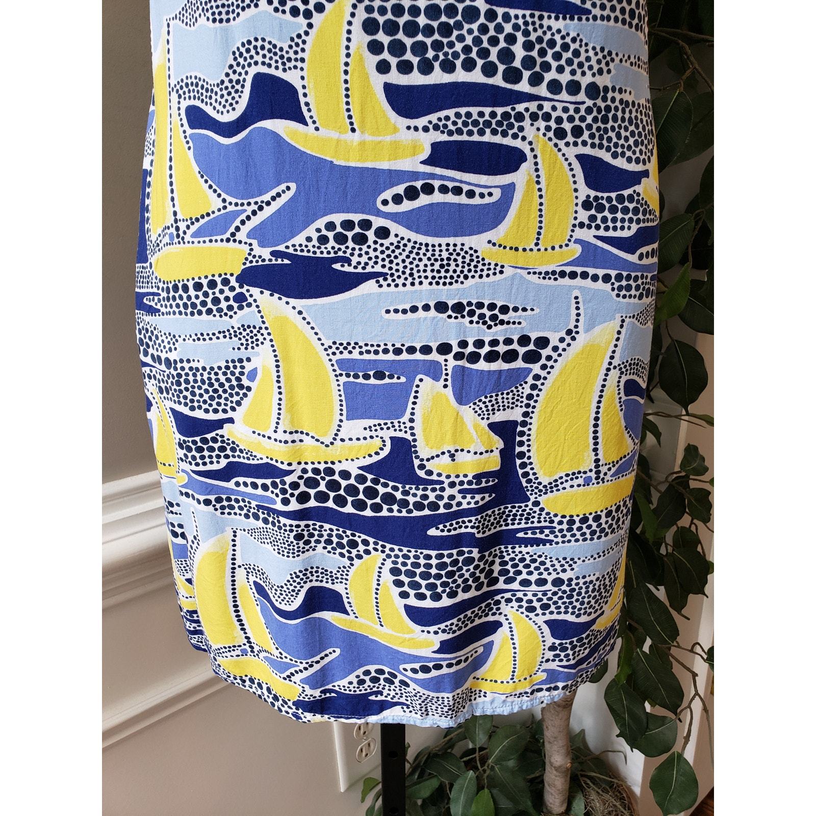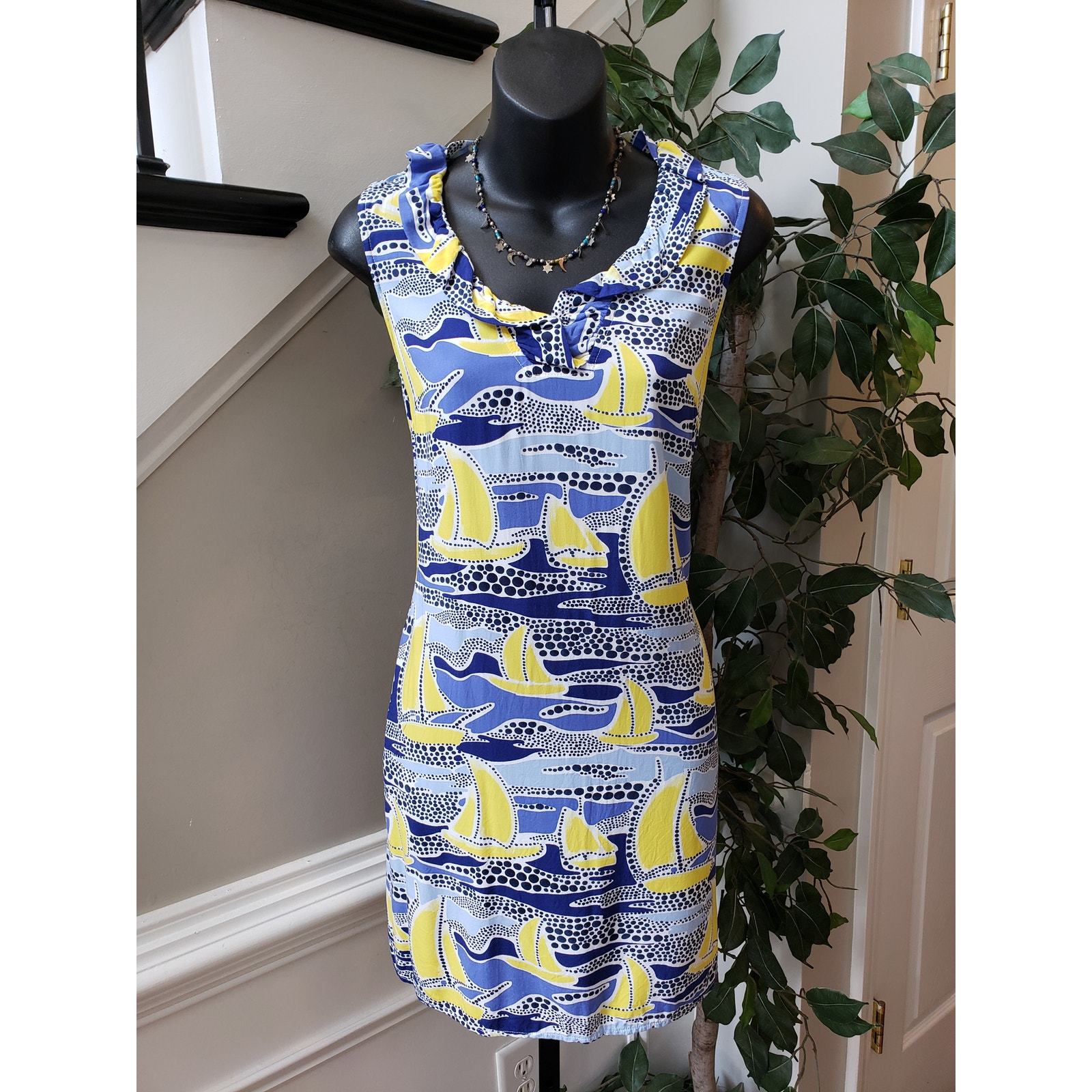Crown & Ivy Sheath Dress Womens PS Multi Sailboat Print Sleeveless Ruffled Neck