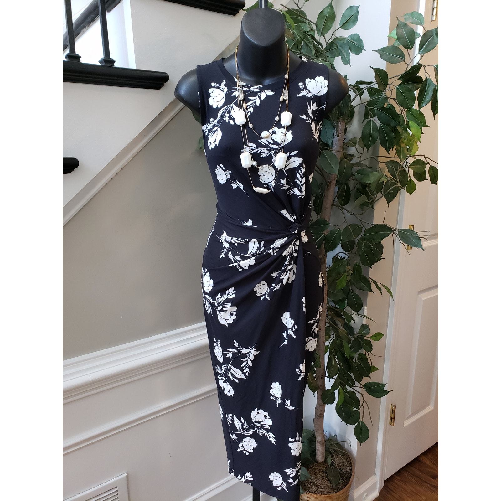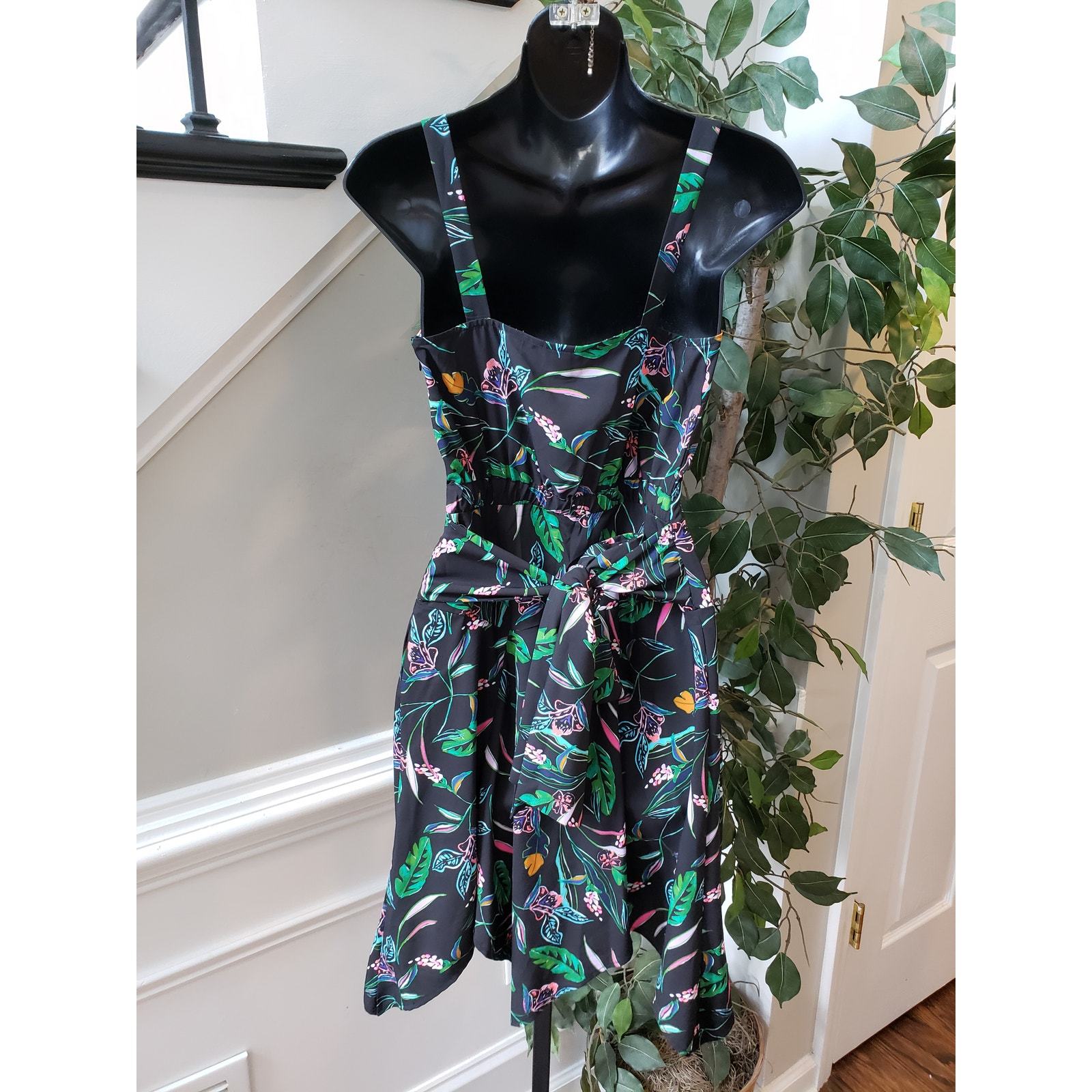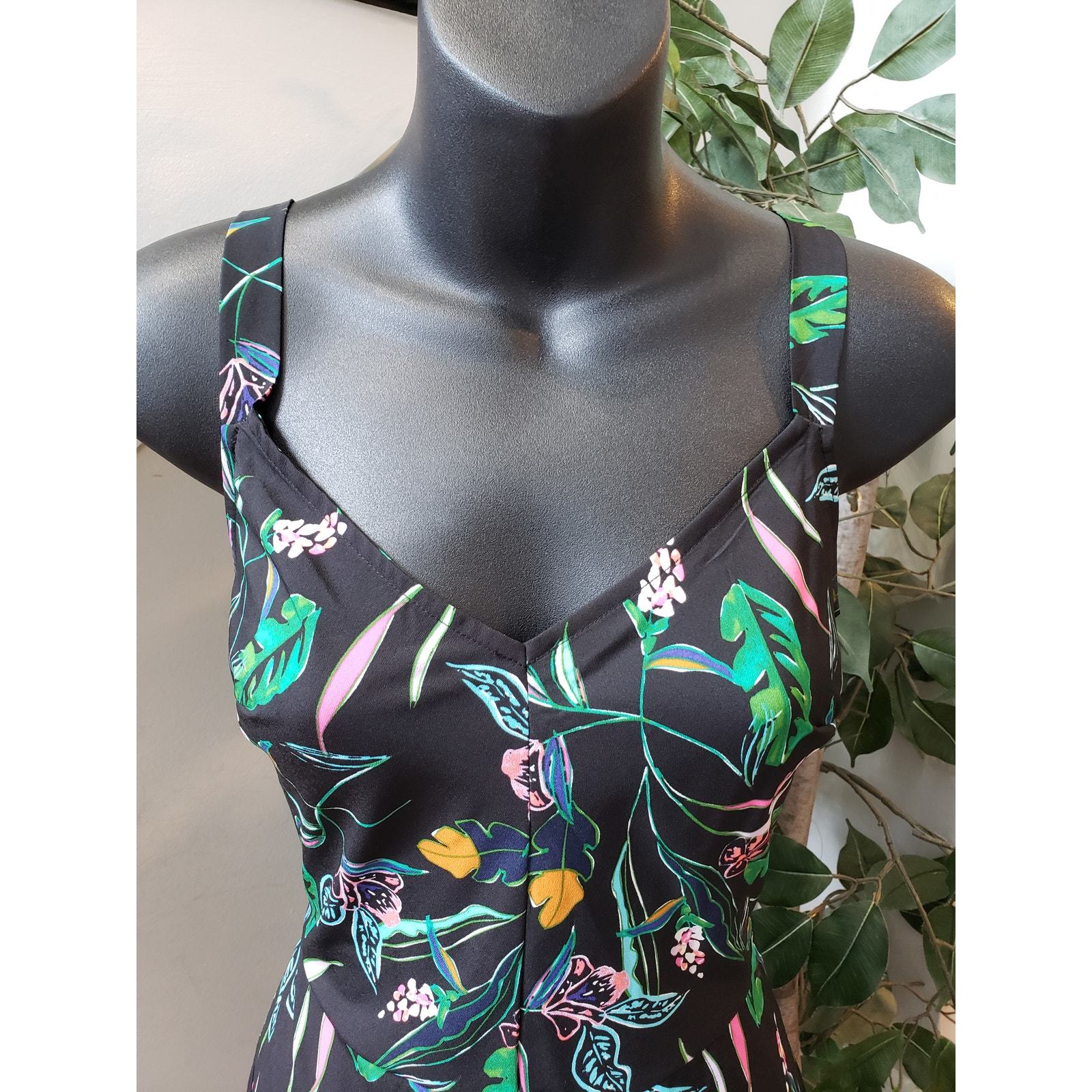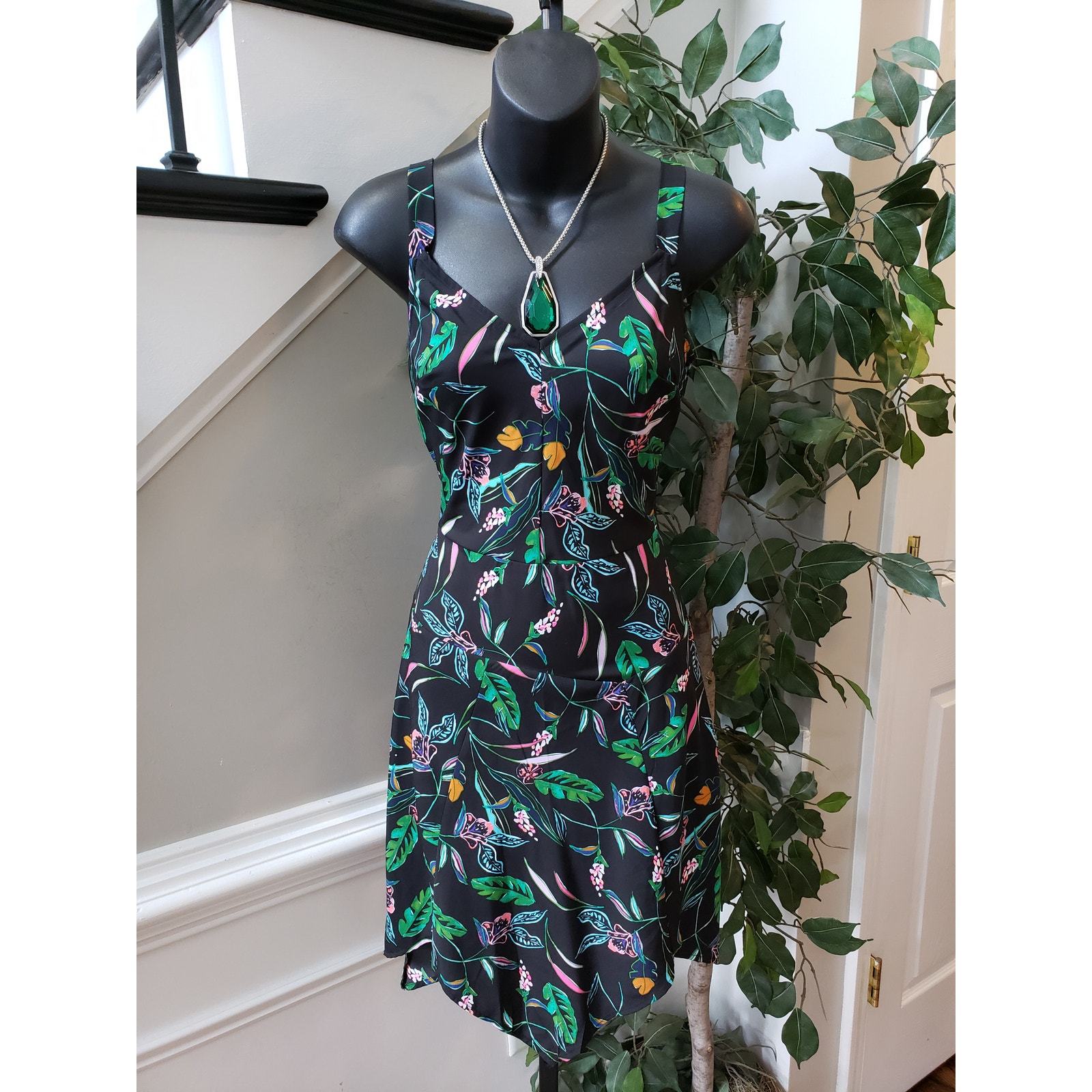 A New Day Asymmetrical Handkerchief Hem Dress Womens XS Black Palm Leaf Side Zip