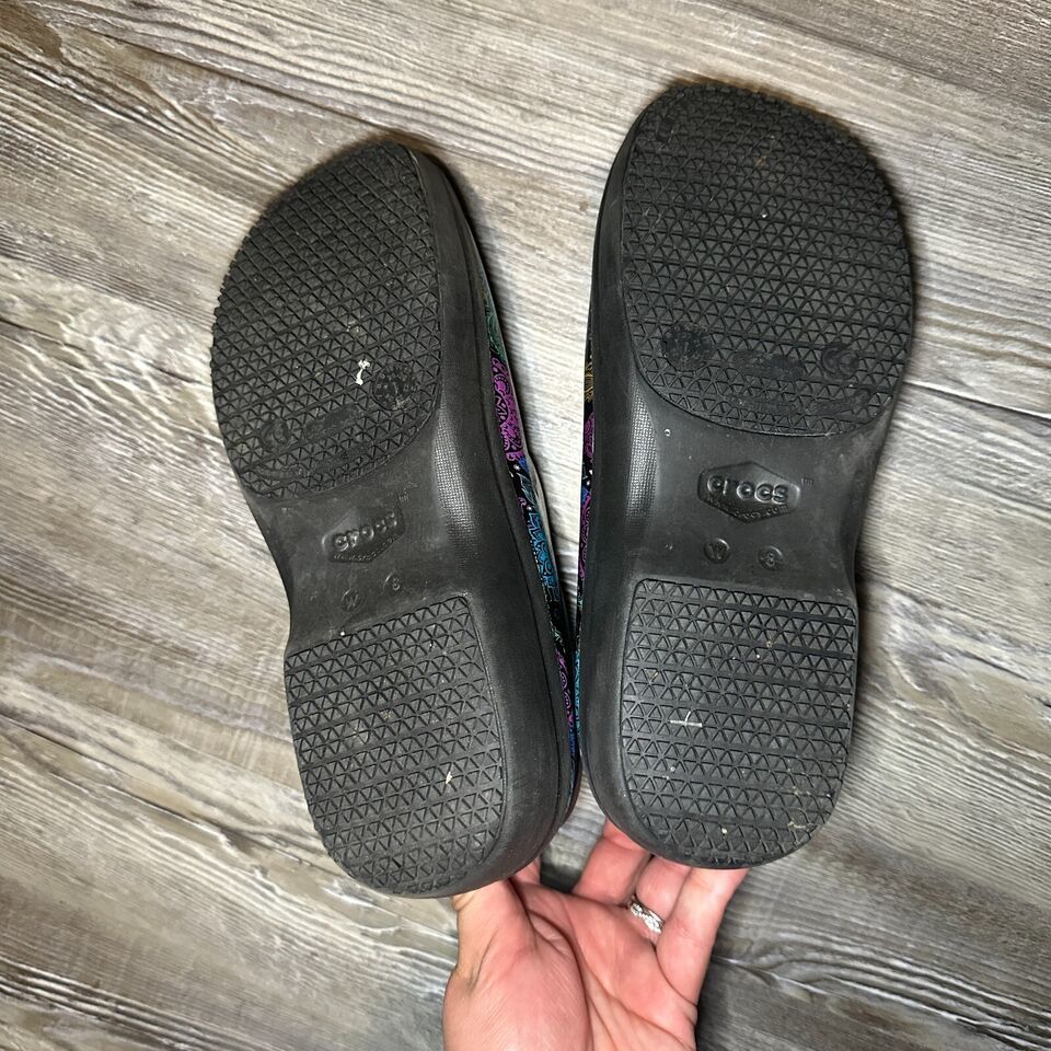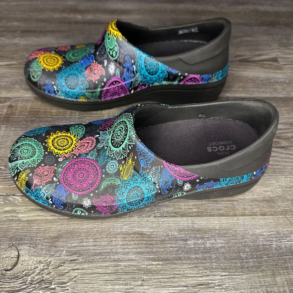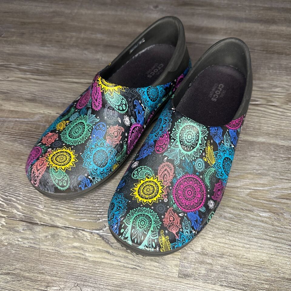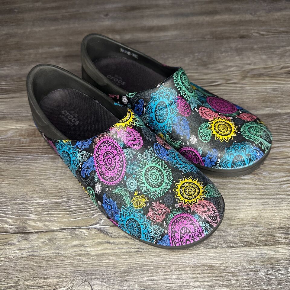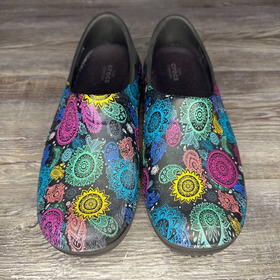 Crocs Womens Size 8 Clogs Neria Pro II Graphic Slip Resistant Floral Black