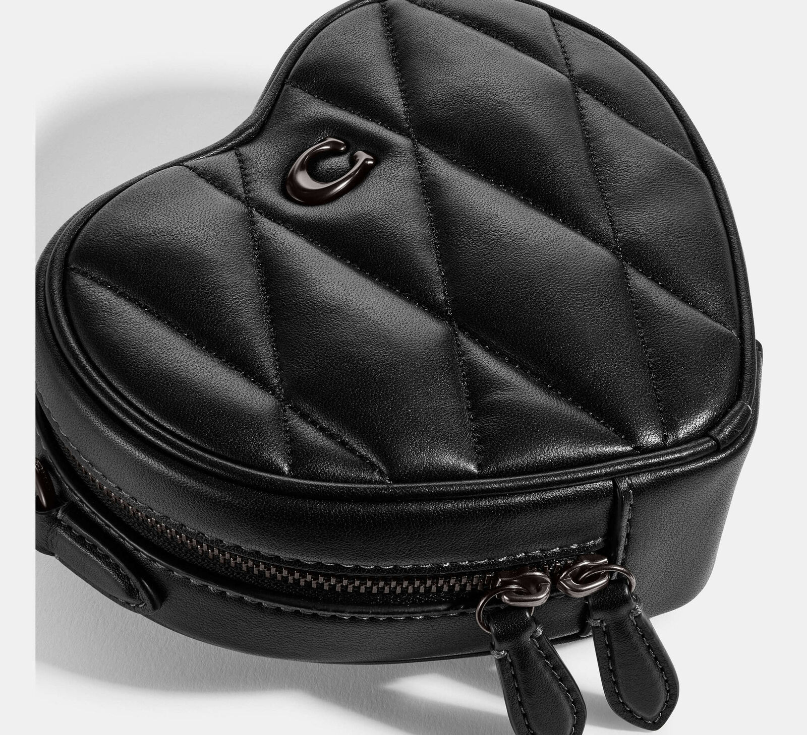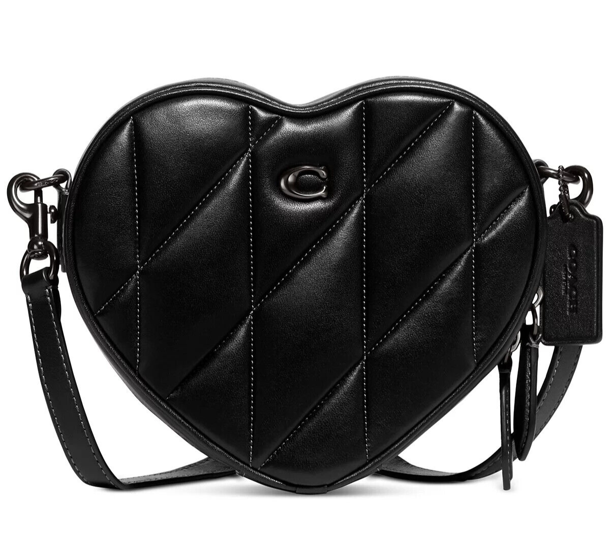 COACH Leather Heart Crossbody Bag W/ Quilting Clutch ~NWT~ CE725 Black