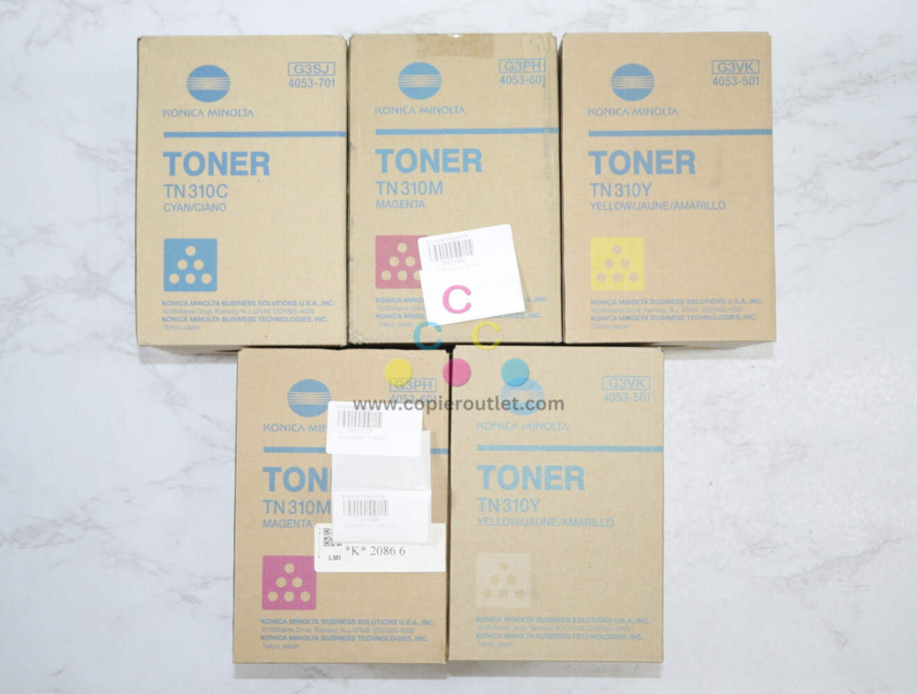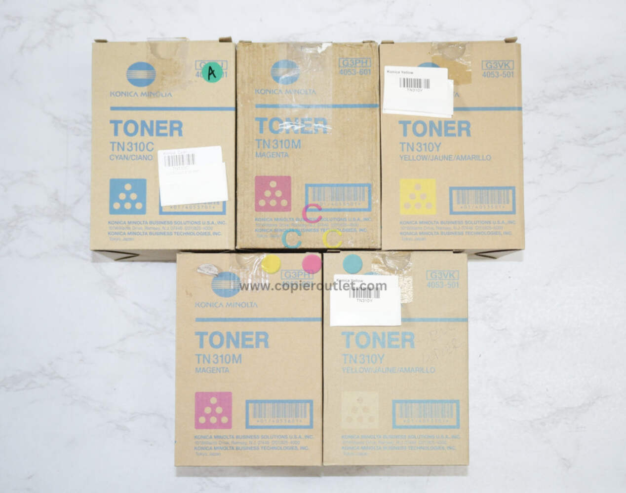 5 Open OEM Konica Minolta C350,C351,C450,CF2203 CMMYY Toners TN310C,TN310M,TN310