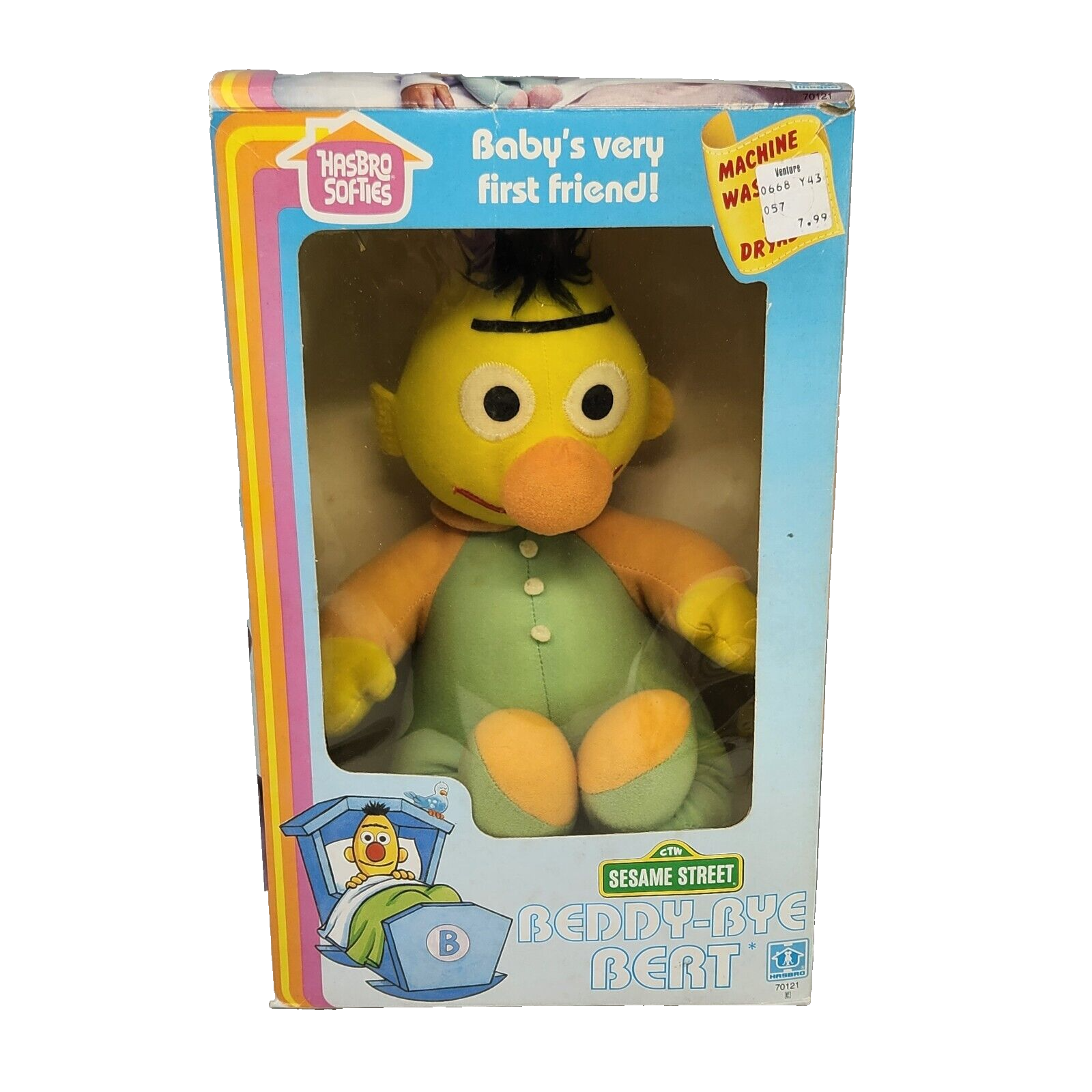 VINTAGE 1984 HASBRO SOFTIES BEDDY BYE BERT SESAME STREET USED IN BOX PLUSH DOLL