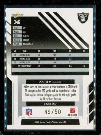2007 Score Select Rookie Gold Zone 49/50 Zach Miller #346 Rookie RC Raiders