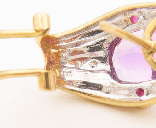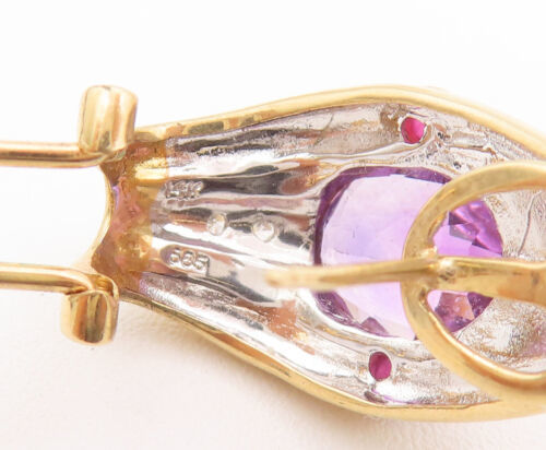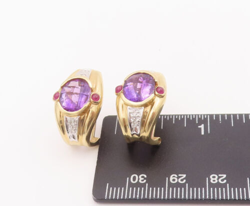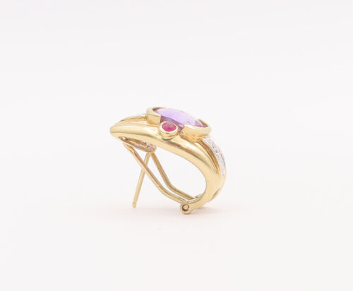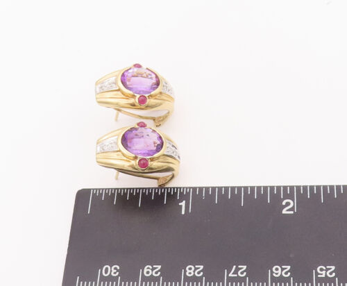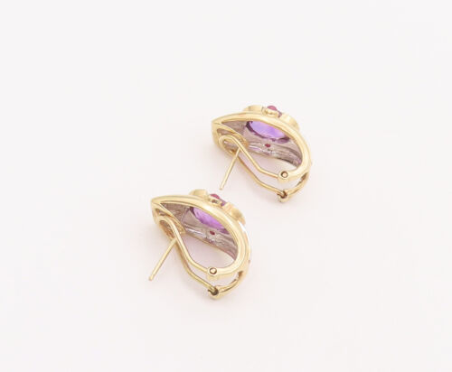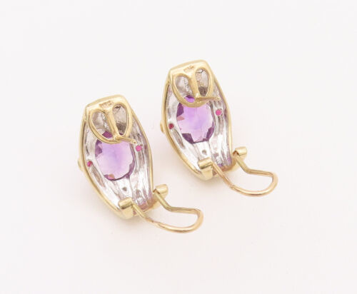 14K GOLD Vintage Earrings Diamond Inlay Band Oval Cut Amethyst & Ruby GE241