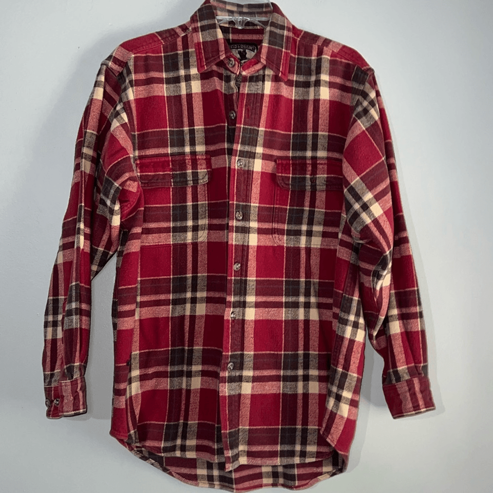 FIELD & STREAM Button Heavy Flannel Shirt Classic Red Lumberjack Plaid Mens M