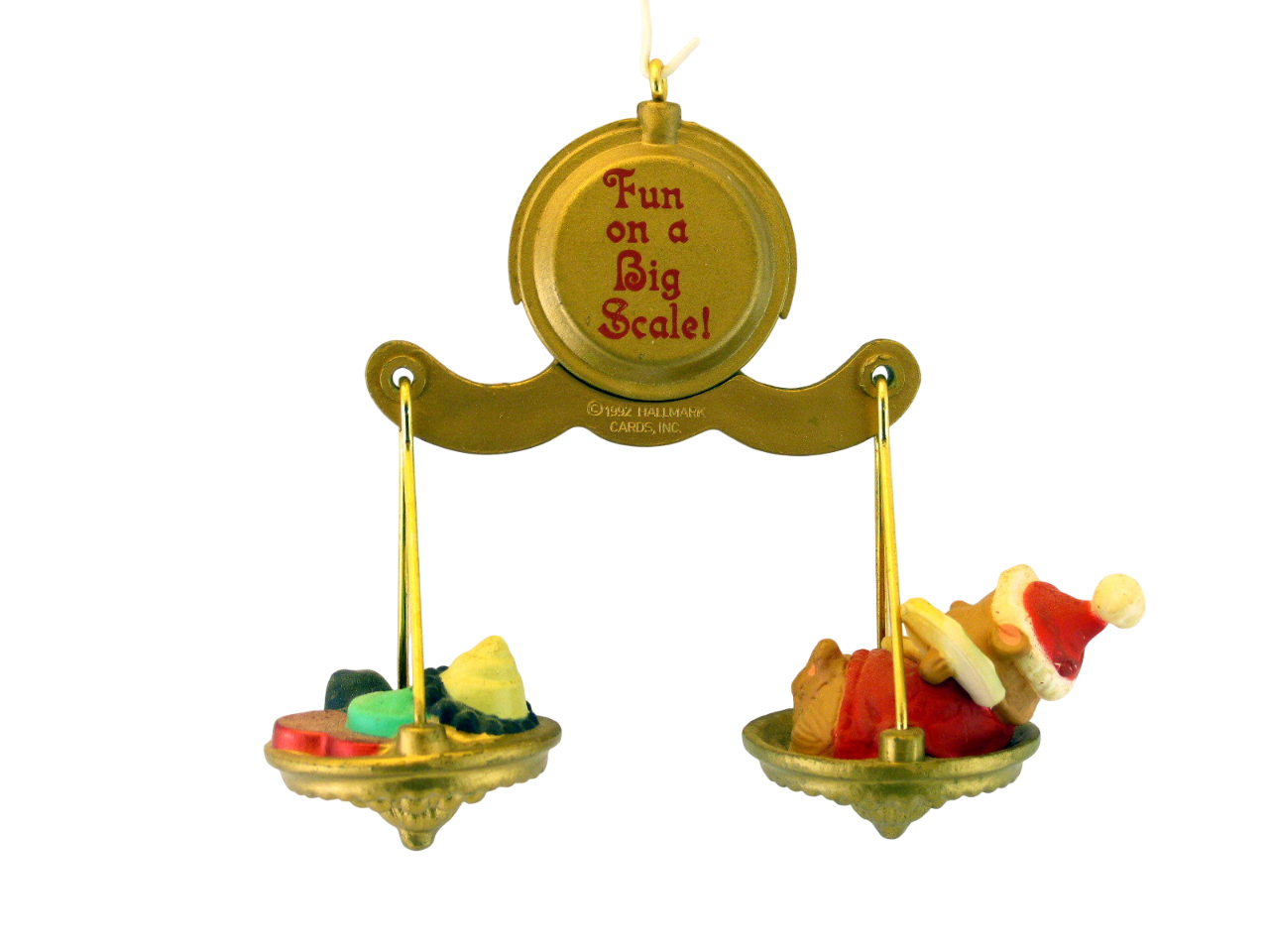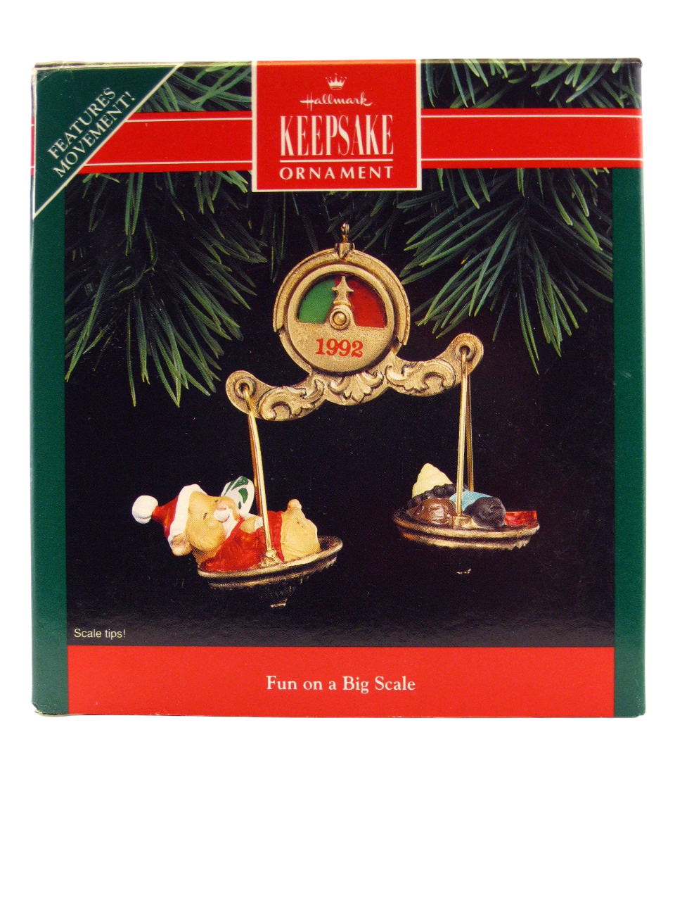 Add a touch of vintage charm to your holiday decor with the HALLMARK KEEPSAKE "Fun On A Big Scale" Christmas ornament from 1992. This delightful piece features a whimsical scale design that brings a playful spin to traditional festive decorations. With its vibrant multi-color finish, this ornament is sure to stand out on your Christmas tree.