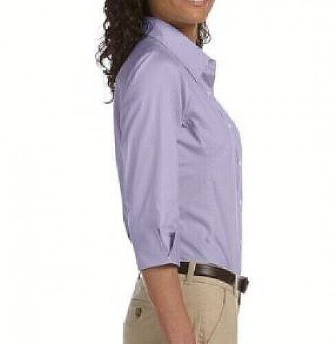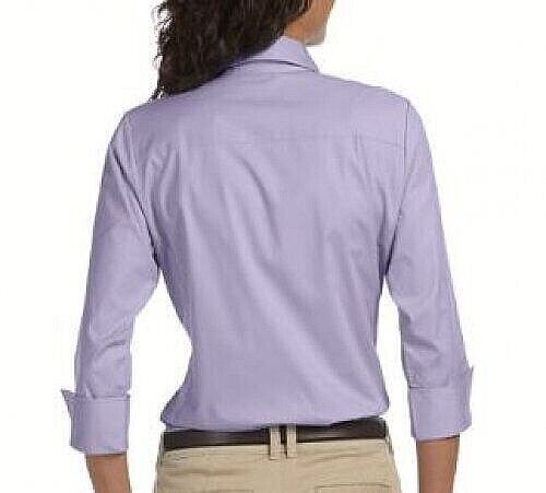Devon & Jones Women's S Poplin Stretch 3/4 Sleeve Button Blouse Azalea Purple Sm