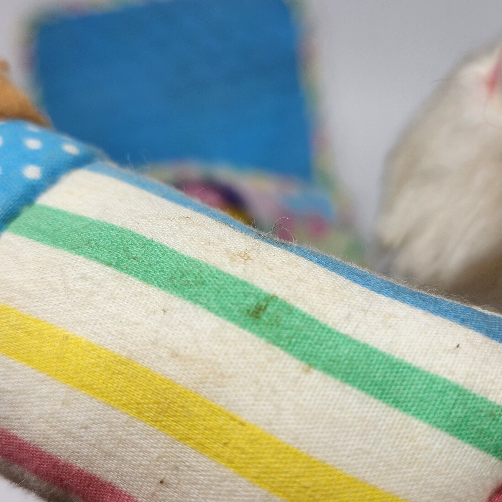 Teddy has a very small hole in the shoulder and also on the hat
