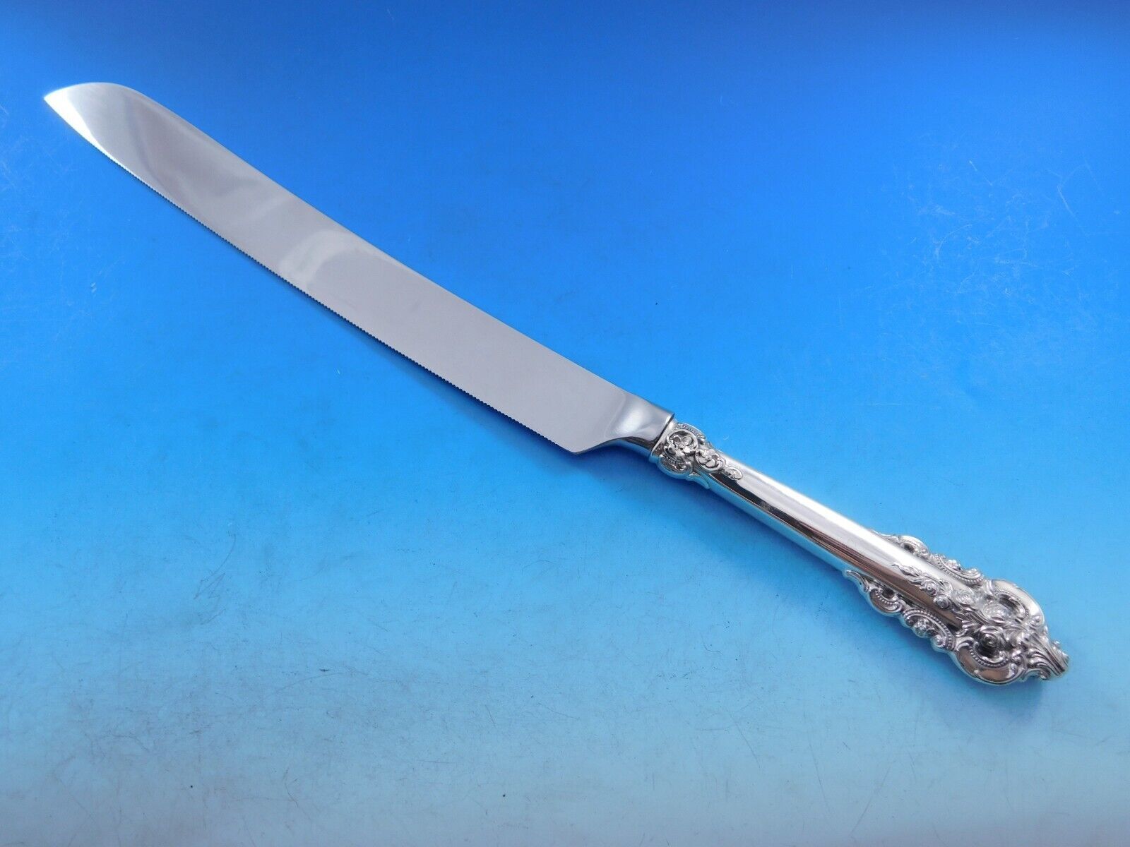 Sterling silver hollow handle with stainless blade custom made Wedding Cake or Bread Knife 12 1/2" in the pattern Grande Baroque By Wallace. It is not monogrammed and is in excellent condition.