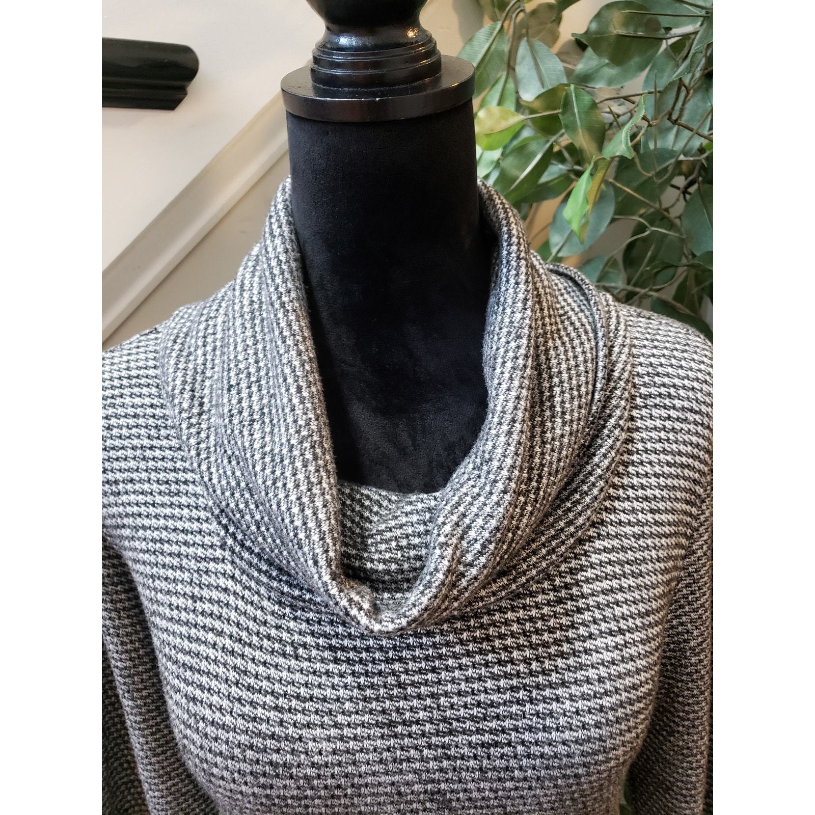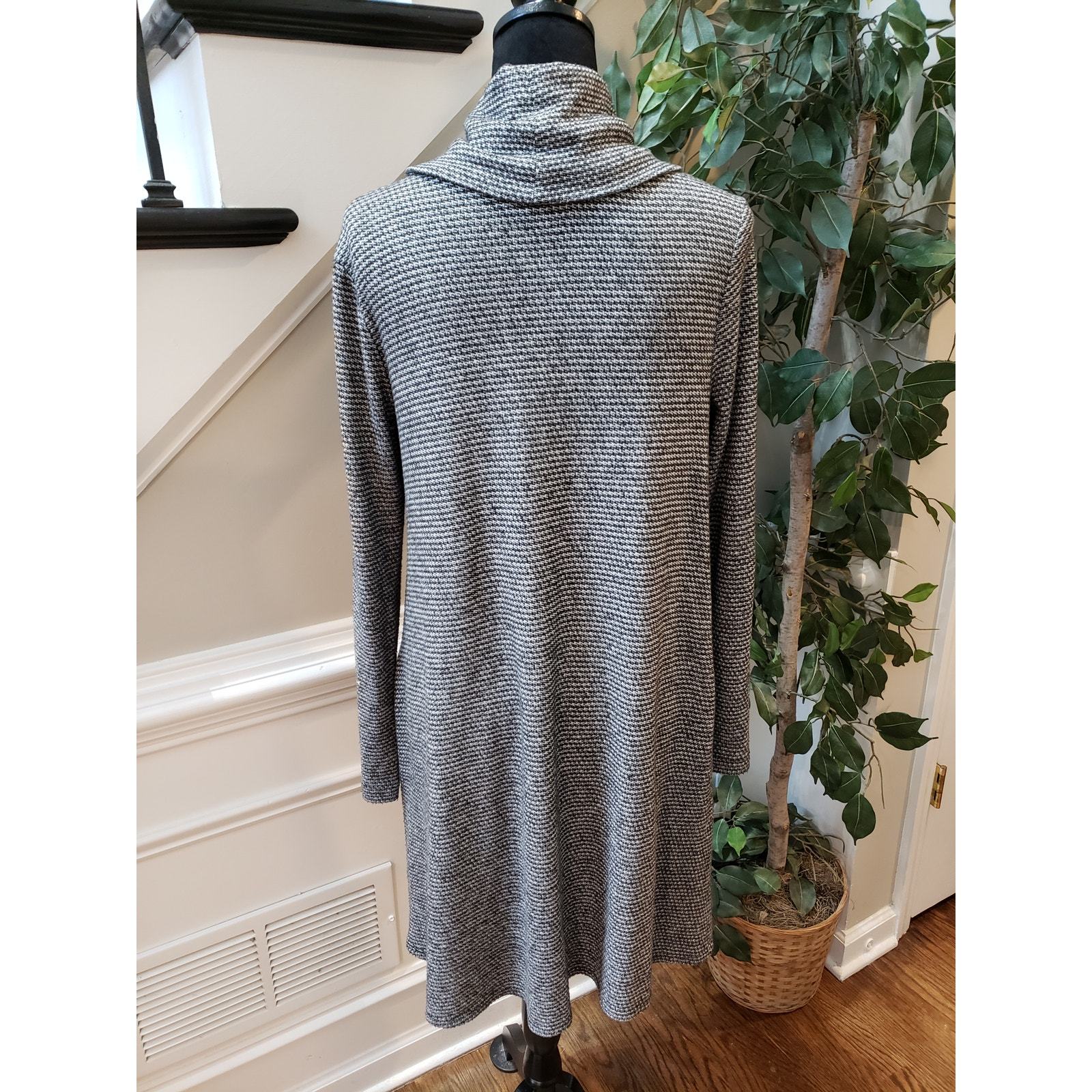AGB Sweater Dress Women's Medium Black Gray Checked Knit Long Sleeve Cowl Neck