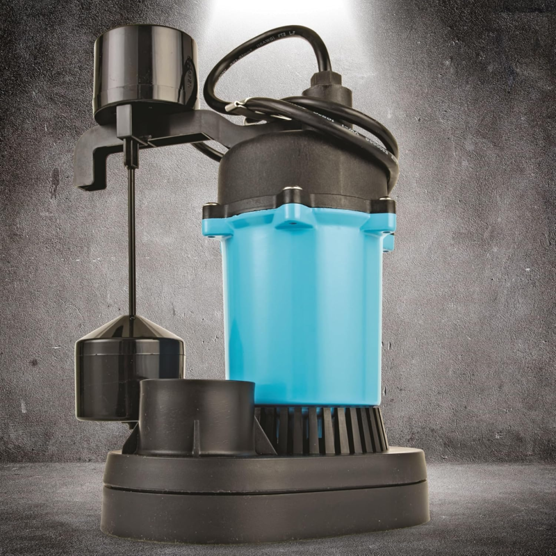 2880 GPH Automatic Submersible Epoxy Coated Cast Aluminum Sump Pump with Piggy-Back Vertical Switch and 8-Ft. Cord, Blue, 506251