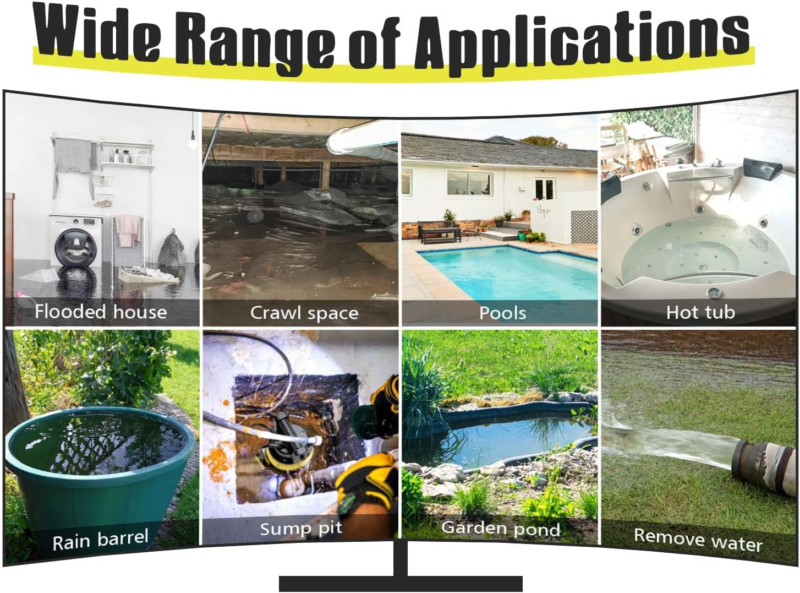 ?Application Occasions?Ideal for removing water from pools, sump pits, cellars, reservoirs, flooded basements, flat roofs and more, but not for applications involving corrosive or flammable liquids. The higher and larger base is designed to be more stable and can be passed through the maximum solid size of 1.5? .