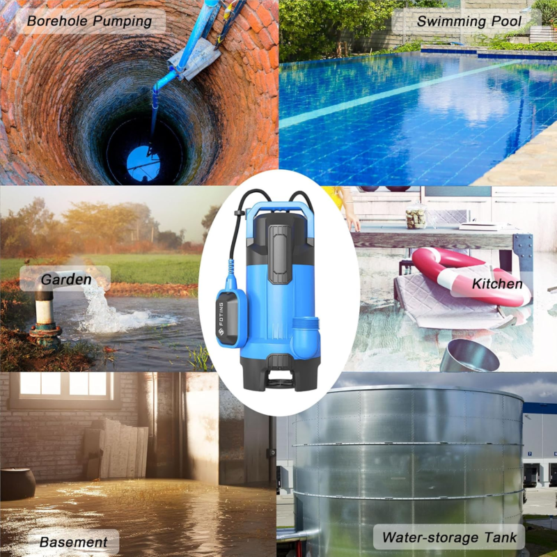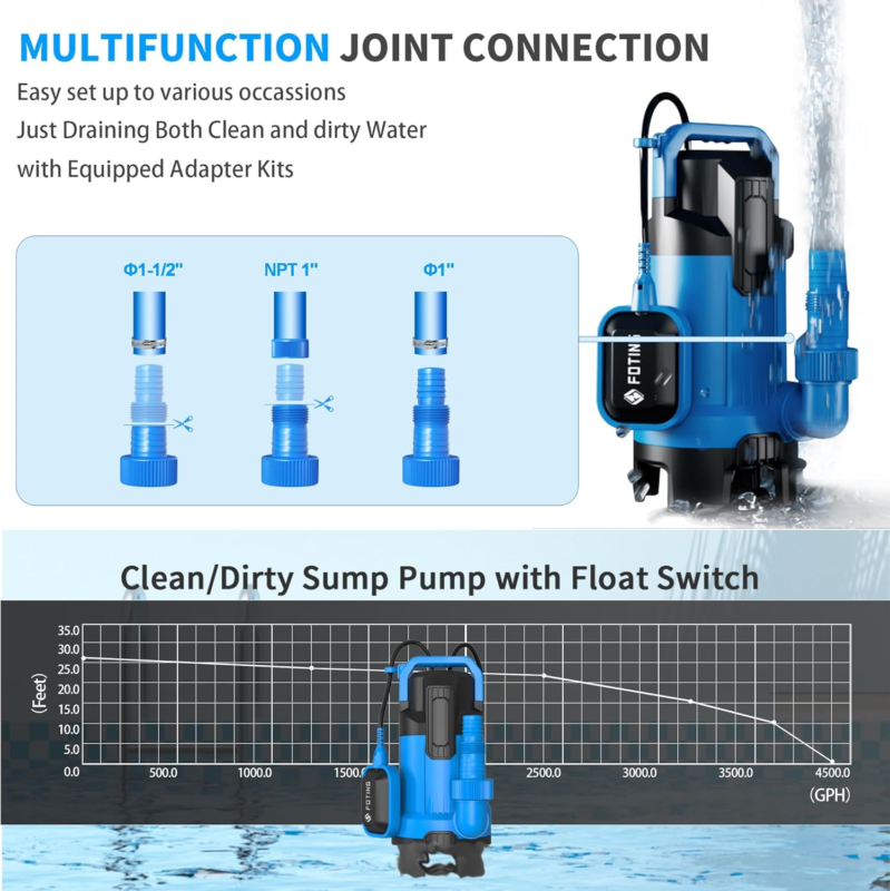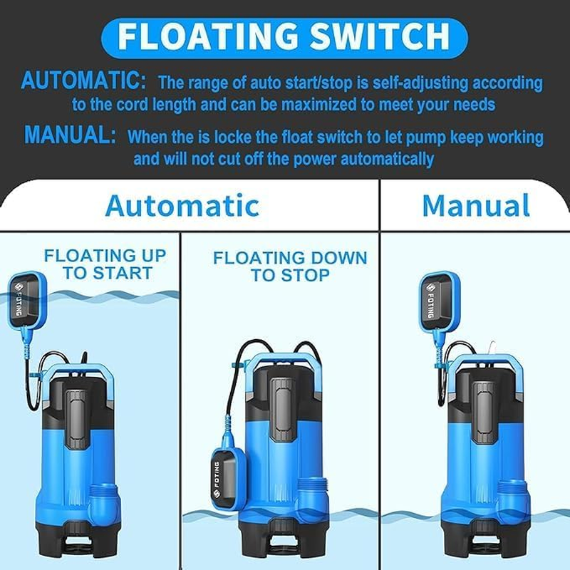 2024 Upgraded, Submersible Water Pump with Float Switch Clean/Sewage, Sealed The