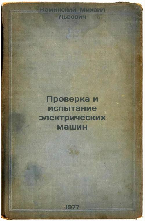 Short description: In Russian. Kaminsky, Mikhail Lvovich. Testing and Testing Electric Machines. Moscow: Energiya, 1977. Proverka i ispytanie elektricheskikh mashin. In Russian /Inspection and testing of electric machinery. The image is provided for reference only. It may reflect condition of one of the available copies or only help in identifying the edition. Please feel free to contact us for a detailed description of the copies available. SKU7647074