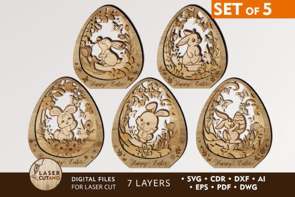 EASTER EGGS BUNDLE Digital multilayer layout files are specially prepared for the laser cut, CNC router machine and other cutting machines.