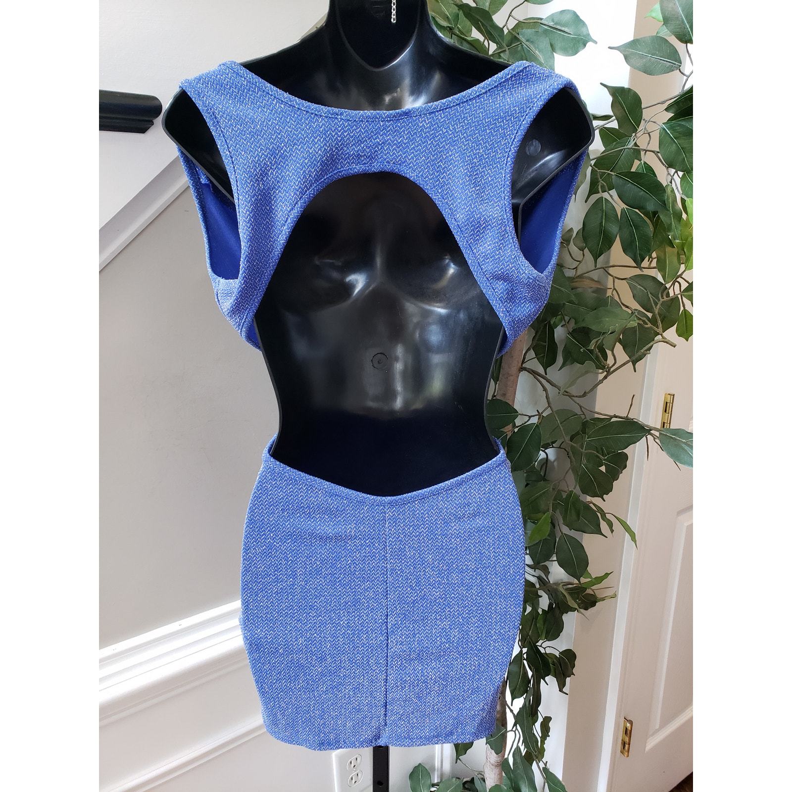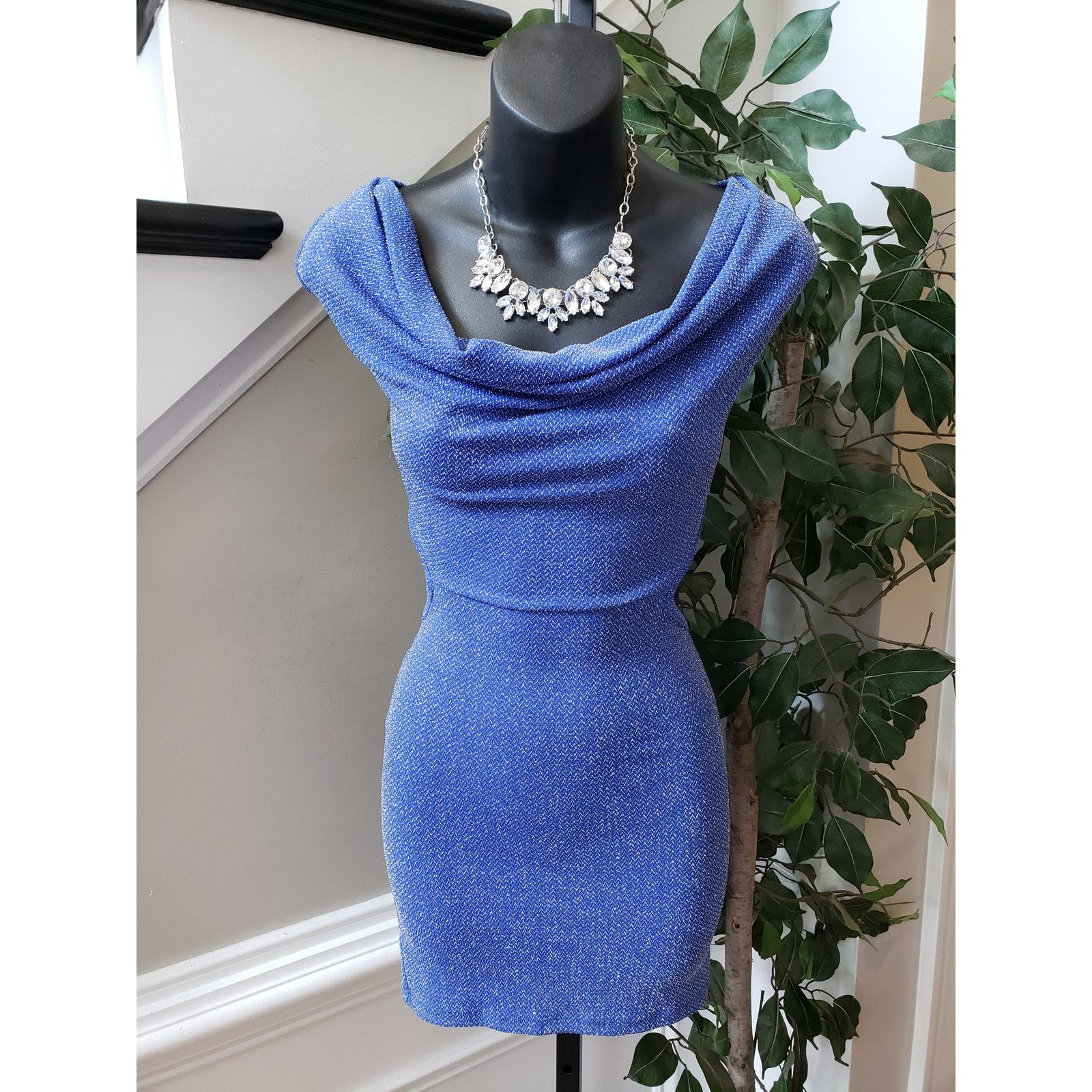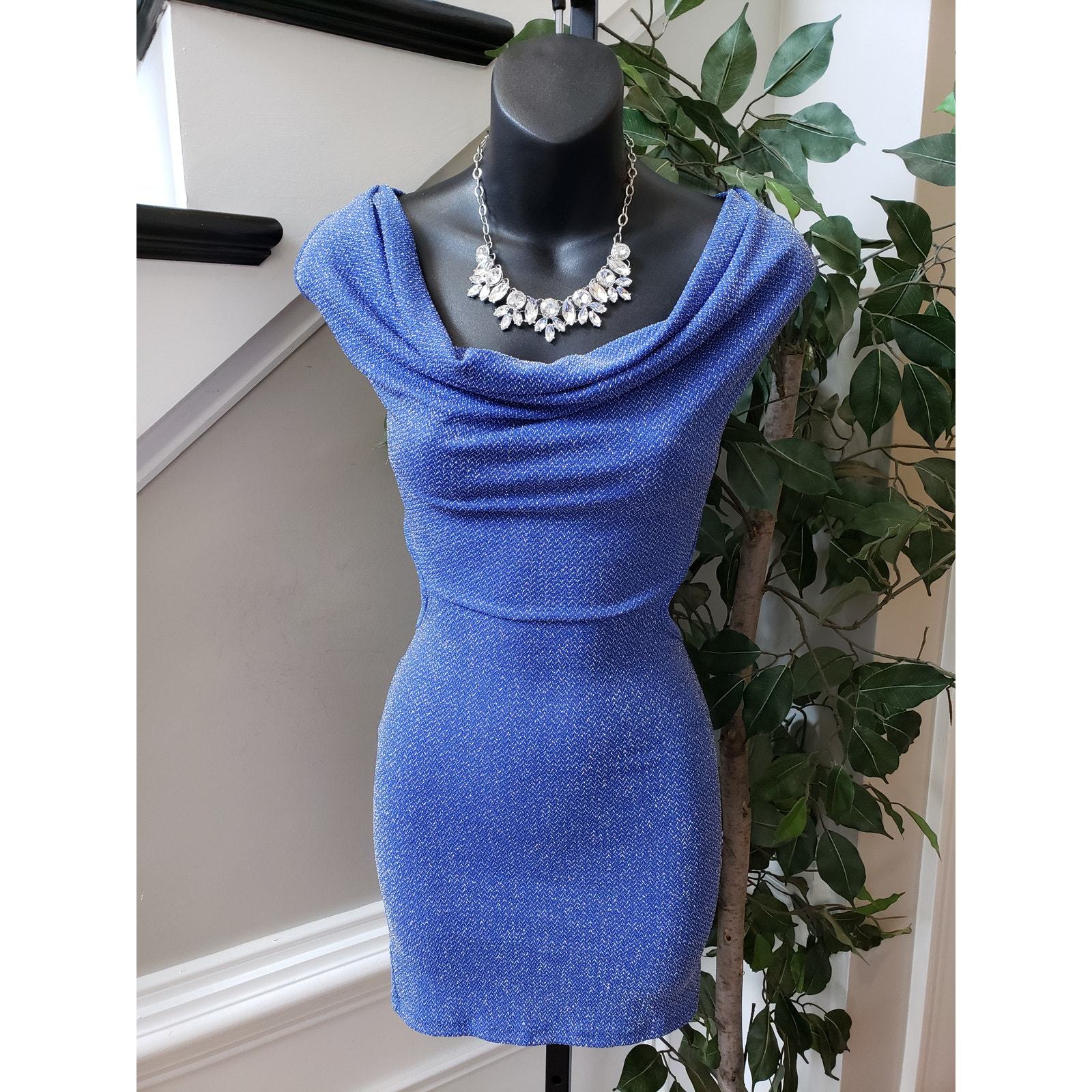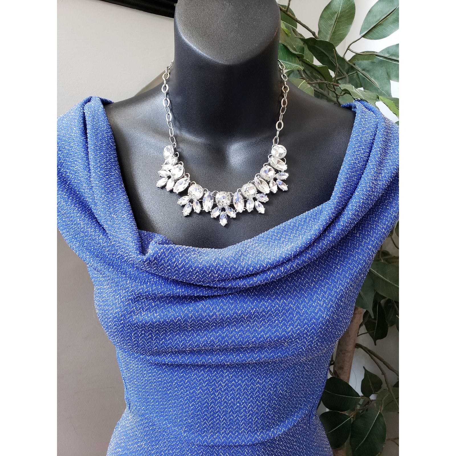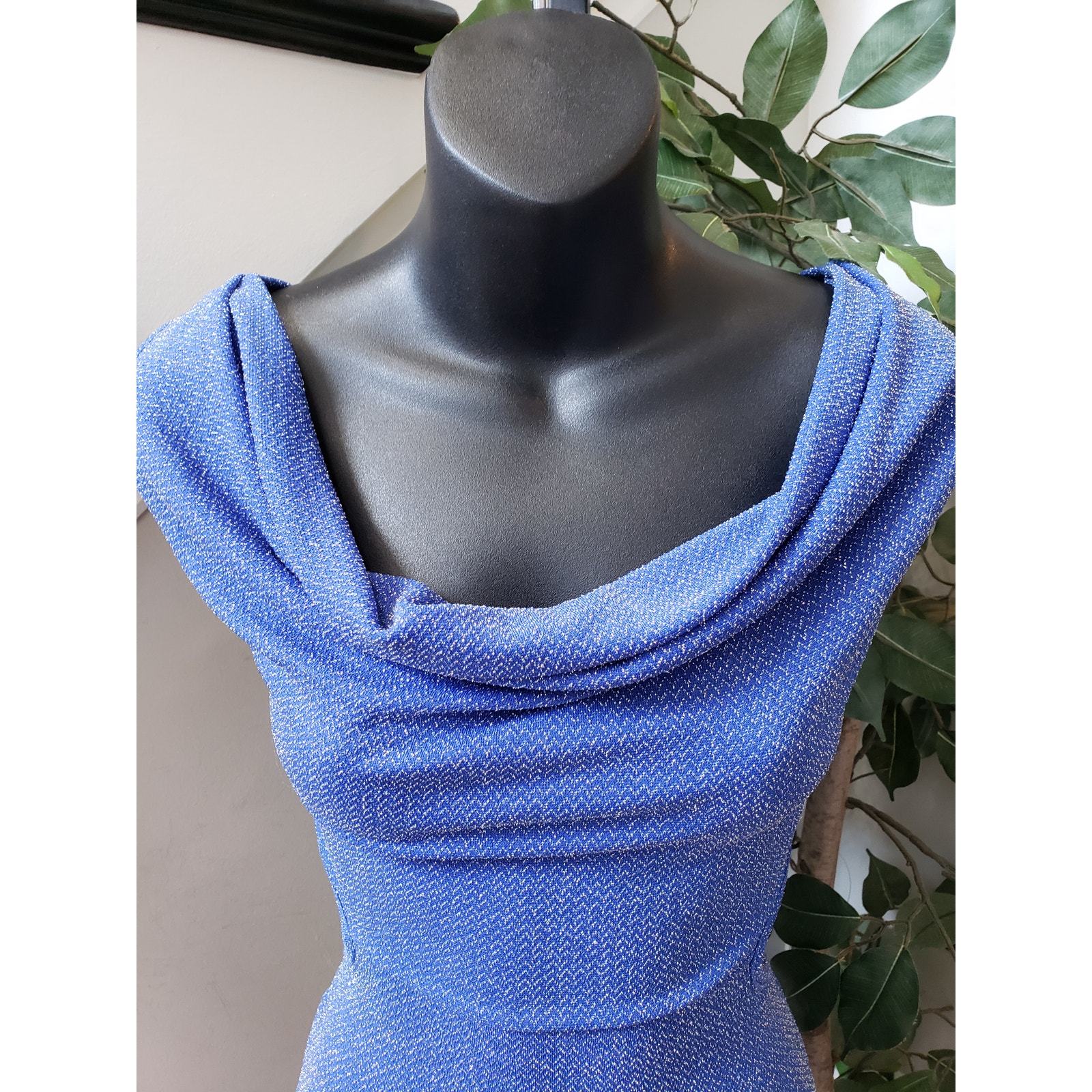 Symphony Dress Women L Blue Polyester Keyhole Back Cowl Neck Sleeveless