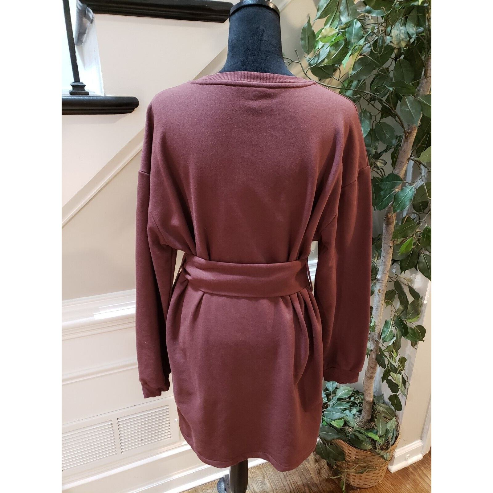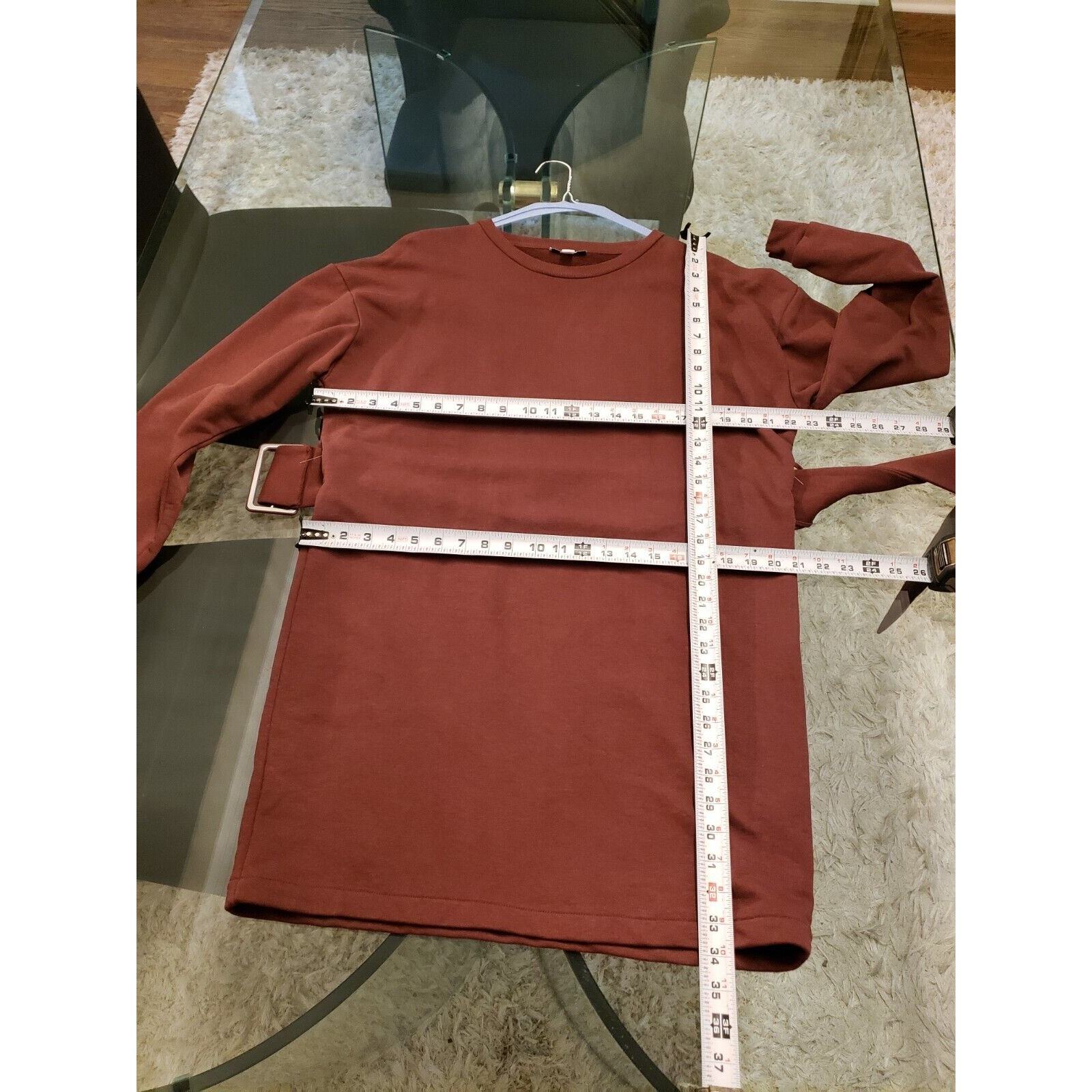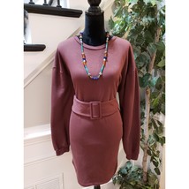 Topshop Womens Brown Cotton Belted Round Neck Long Sleeve Knit Sweater Dress 10