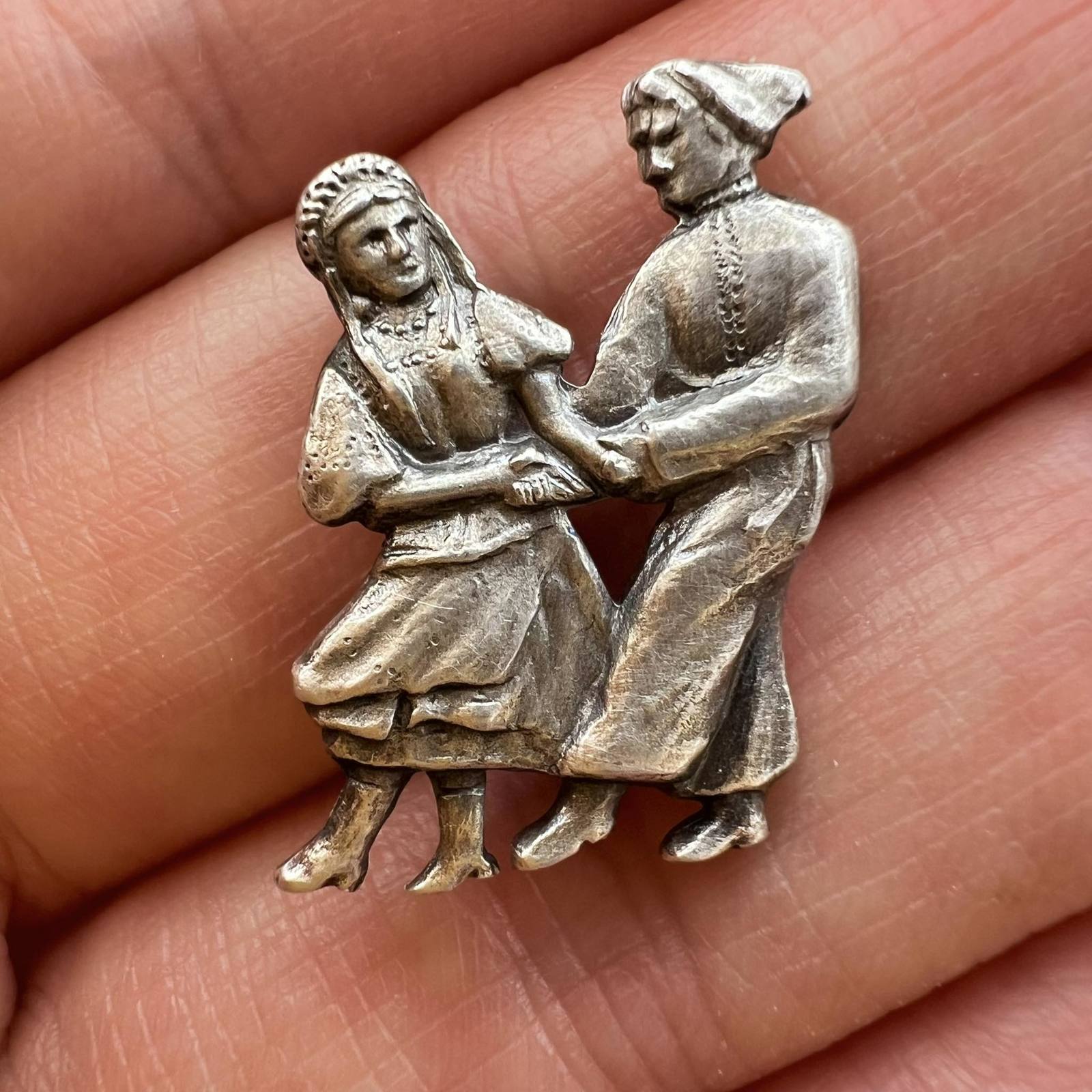 Beautiful Vintage Soviet Sterling Silver 875 Pin Brooch Ukrainian Dance Signed