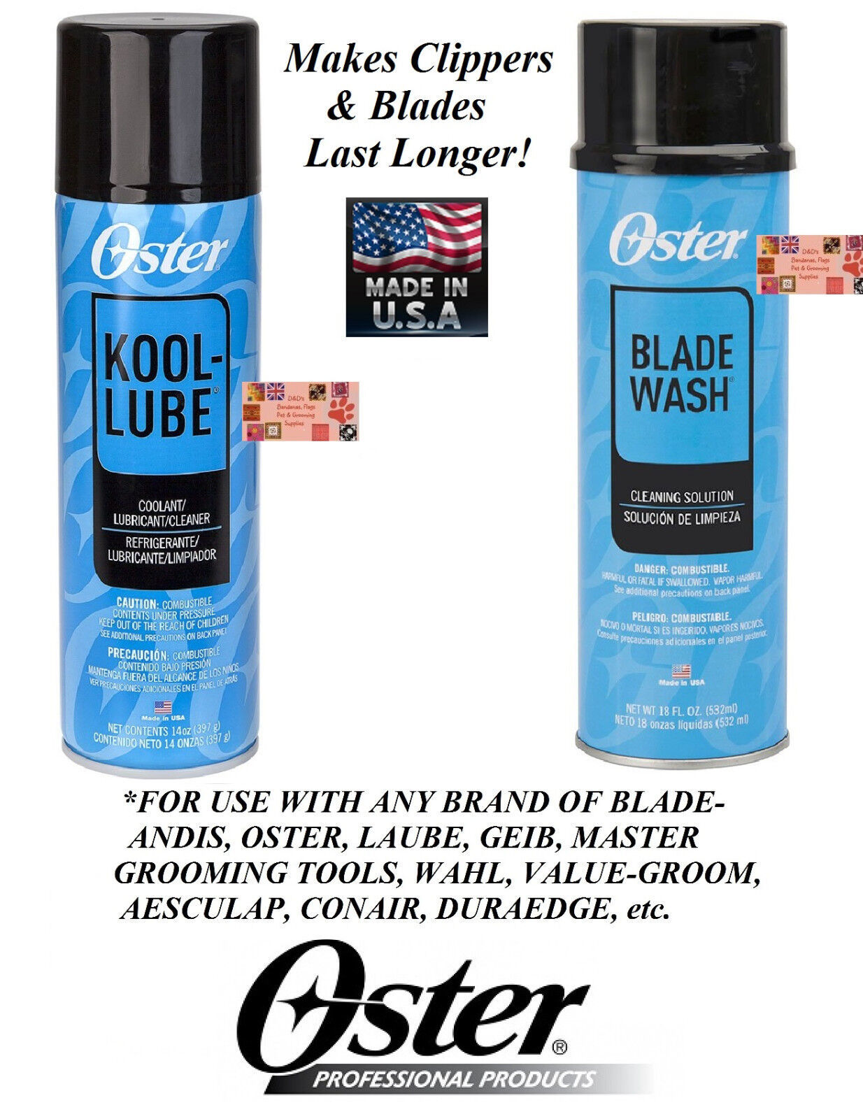 Oster CLIPPER BLADE CARE CLEAN KIT WASH Dip&KOOL LUBE 3 Coolant SPRAY LUBRICANT