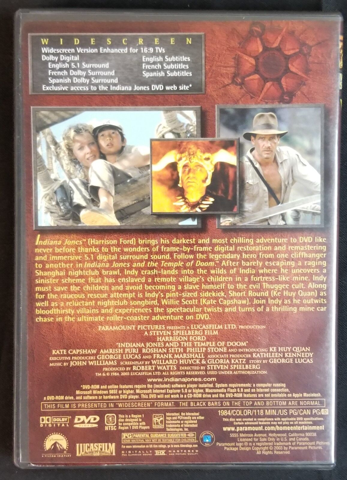 CB) Indiana Jones - The Adventure Collection (DVD, 2003, 3-Disc, Widescreen)