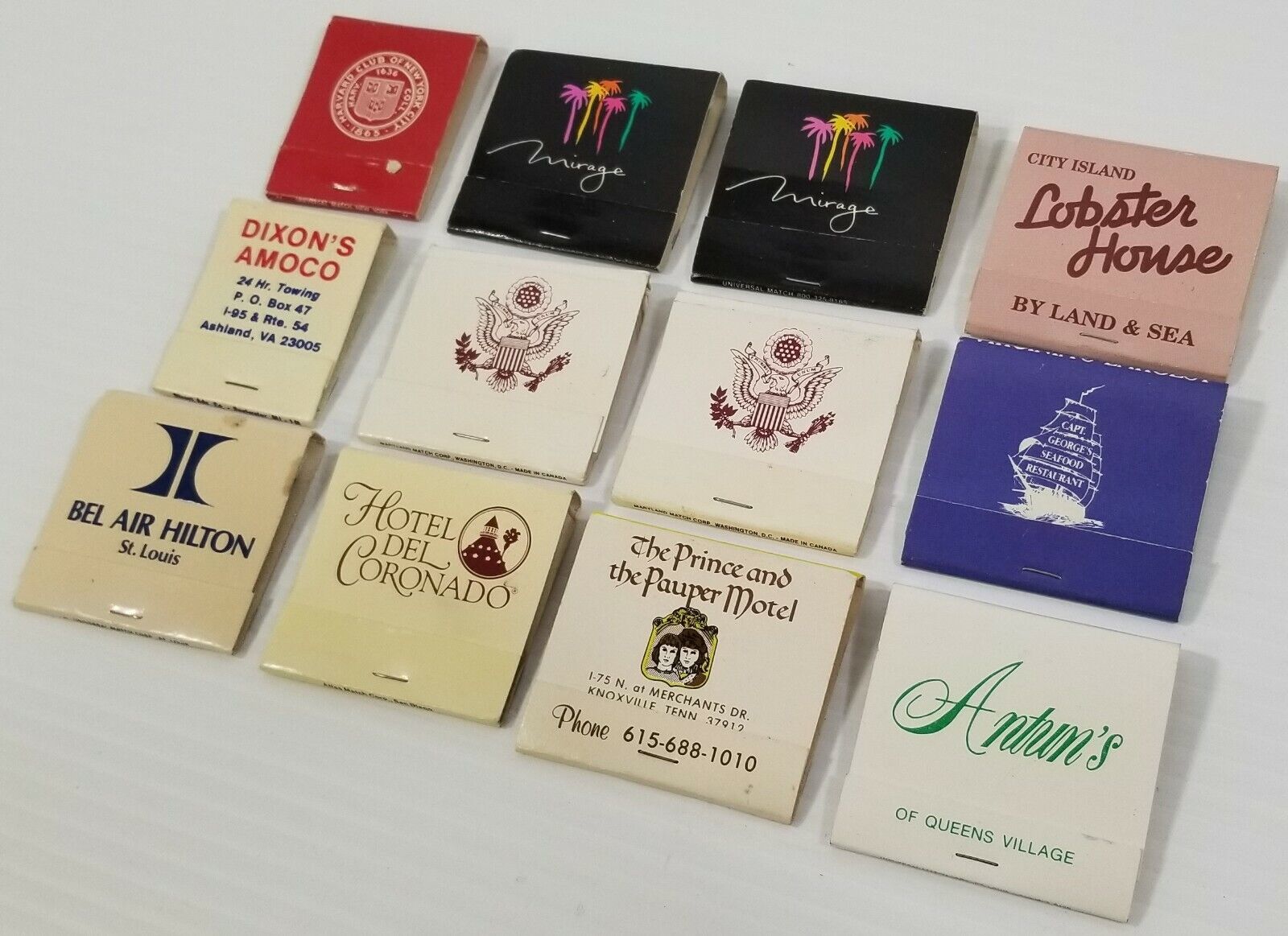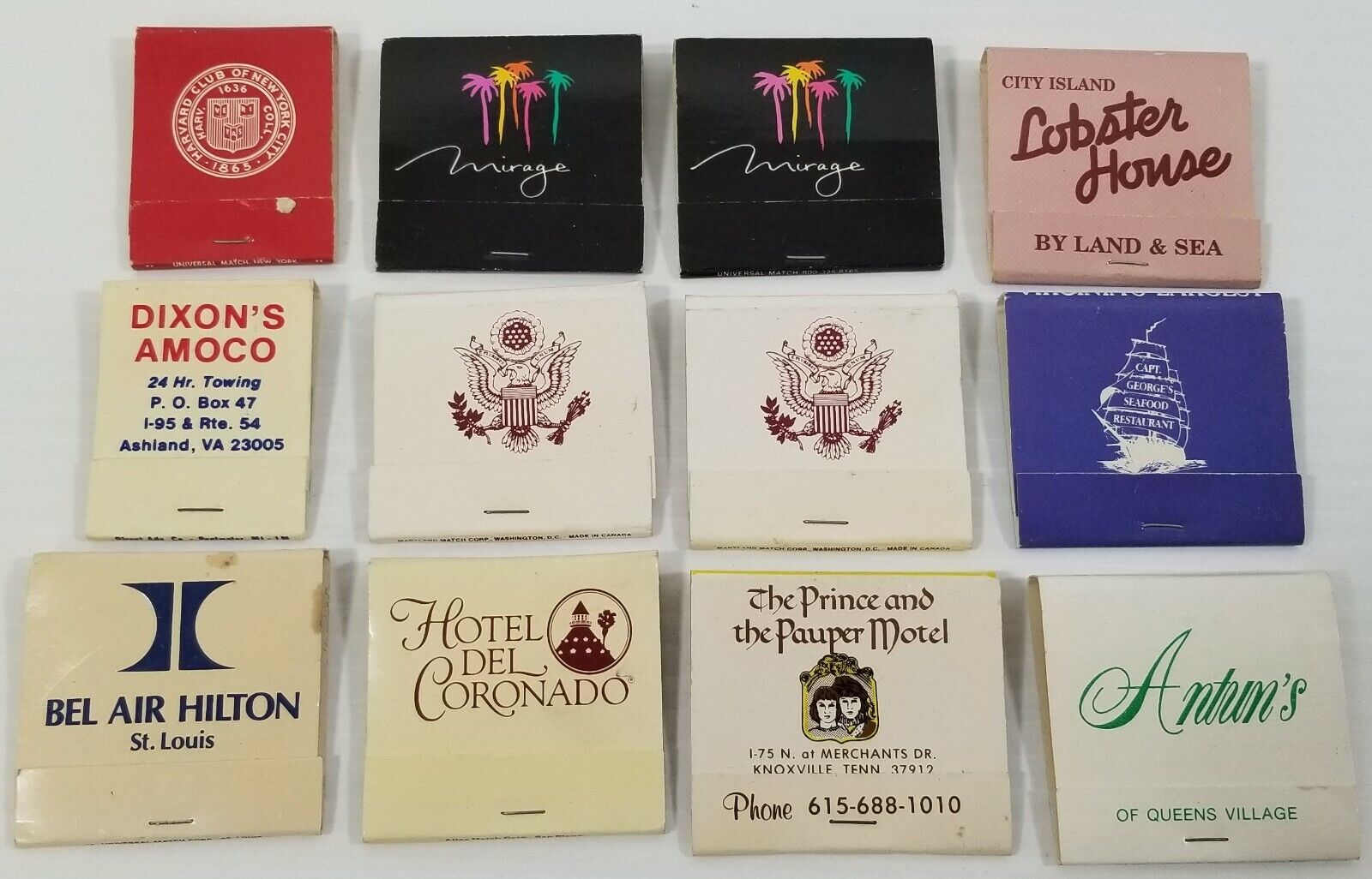 Lot of 12 Random Vintage Hotel Restaurant Matchbooks