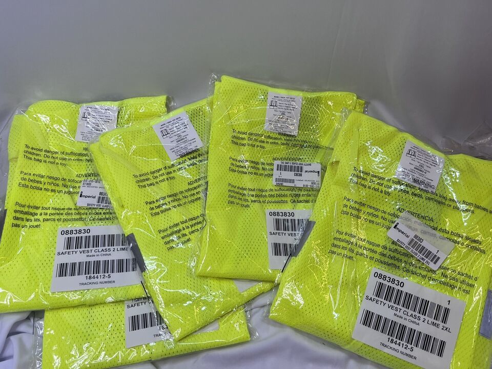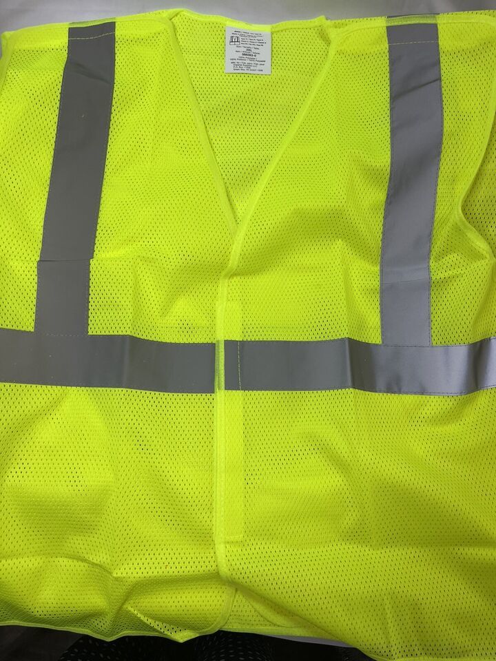 QTY-5 Hi Visibility Neon Yellow Safety Vest Reflective Strip 2XL ANSI/ISEA 88383
