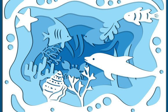 3d Underwater Sea Shadow Box Laser Cut