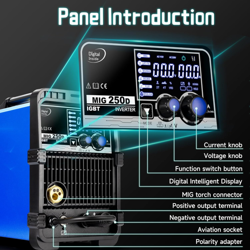 250Amp MIG Welder, 220V - 6 in 1 Multiprocess Welding Machine, Aluminum Welders with LED Display
