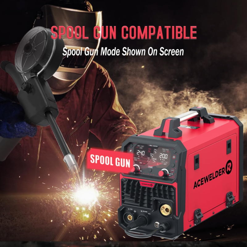 7 in 1 Welding Machine: The multi-function welding machine included Gas/Solid Wire MIG,Pulse MIG, Gasless Flux Core MIG, Stick/MMA, Spot welding, Lift TIG, spool gun compatible (tig gun and spool gun not included,WP-17V-35,LBT150).
