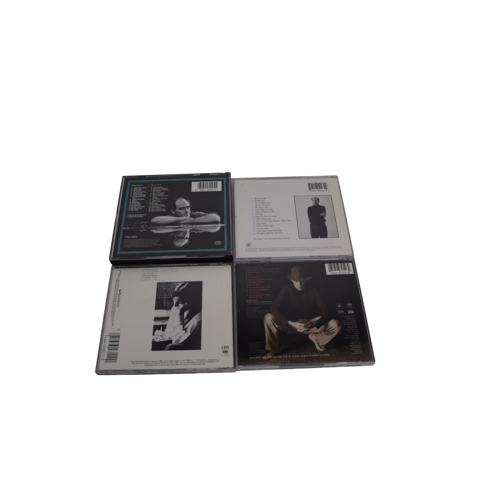 Lot of 4 James Taylor CDs Hourglass, JT, Live, Greatest Hits Vol. 2. Pre-owned in good condition. Discs are good with some light to no signs of wear, all play great. Liner notes are in nice shape. Cases are good with some normal shelf wear. See all photos for details and condition. Will ship USPS Media Mail.